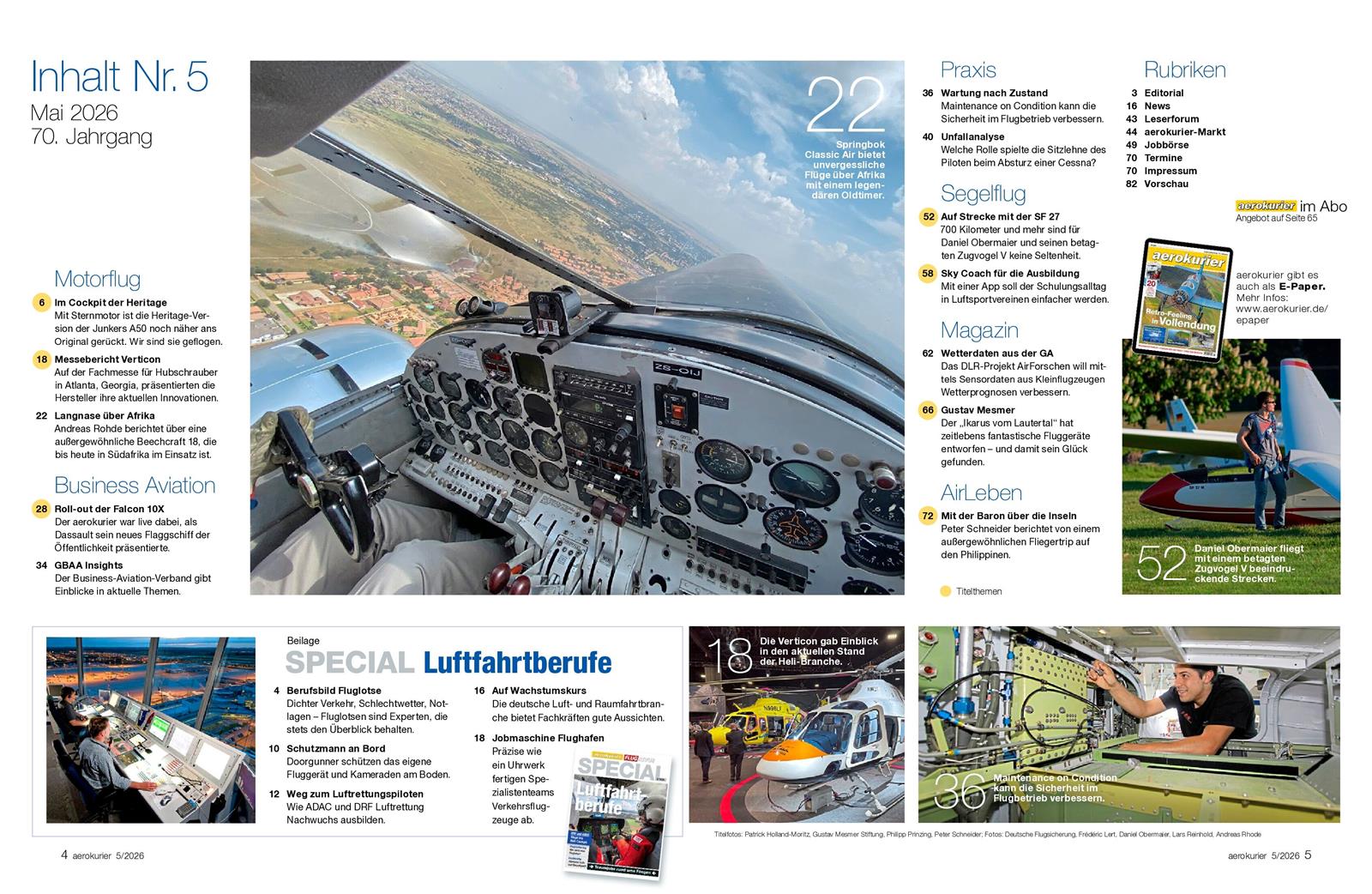 aerokurier ist das Magazin für alle Leser, die sich für das gesamte Spektrum der Zivilluftfahrt interessieren. Wer selbst fliegt, weiß die Vorteile dieses höchst informativen Special Interest Magazins zu schätzen!
