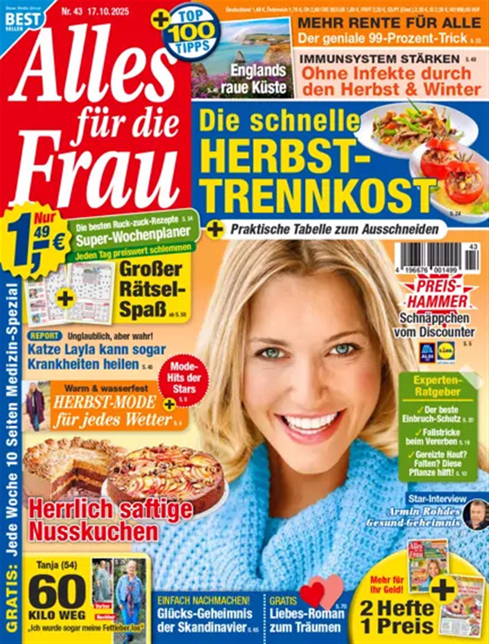 Alles für die Frau ist das Service-Weekly für die Leserin, die alles will: Viel Service, aktuelle Informationen und gute Unterhaltung.
