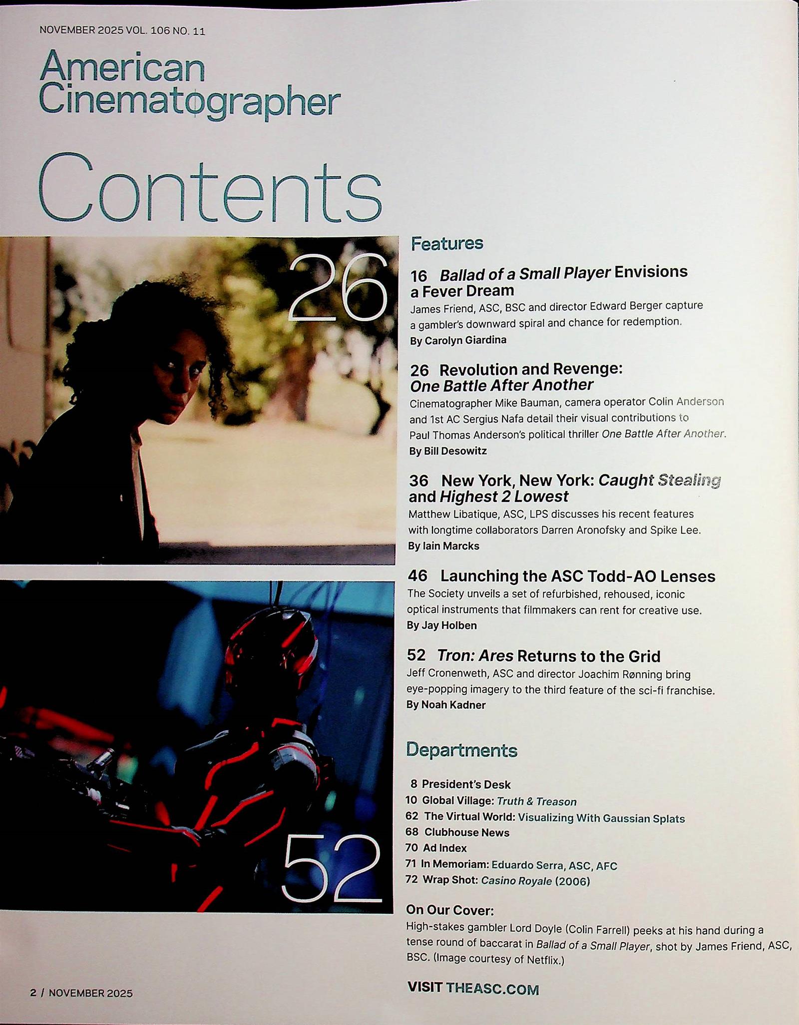 American Cinematographer ist ein Magazin für Kameraleute und für diejenigen, die die Kunst und das Handwerk hinter der Produktion jedes bewegten Bildes schätzen, von Fernsehdramen bis hin zu Großbildfilmen. American Cinematographer ist genau das Richtige für diejenigen, die wissen, wie man Fernsehen ernst nimmt.