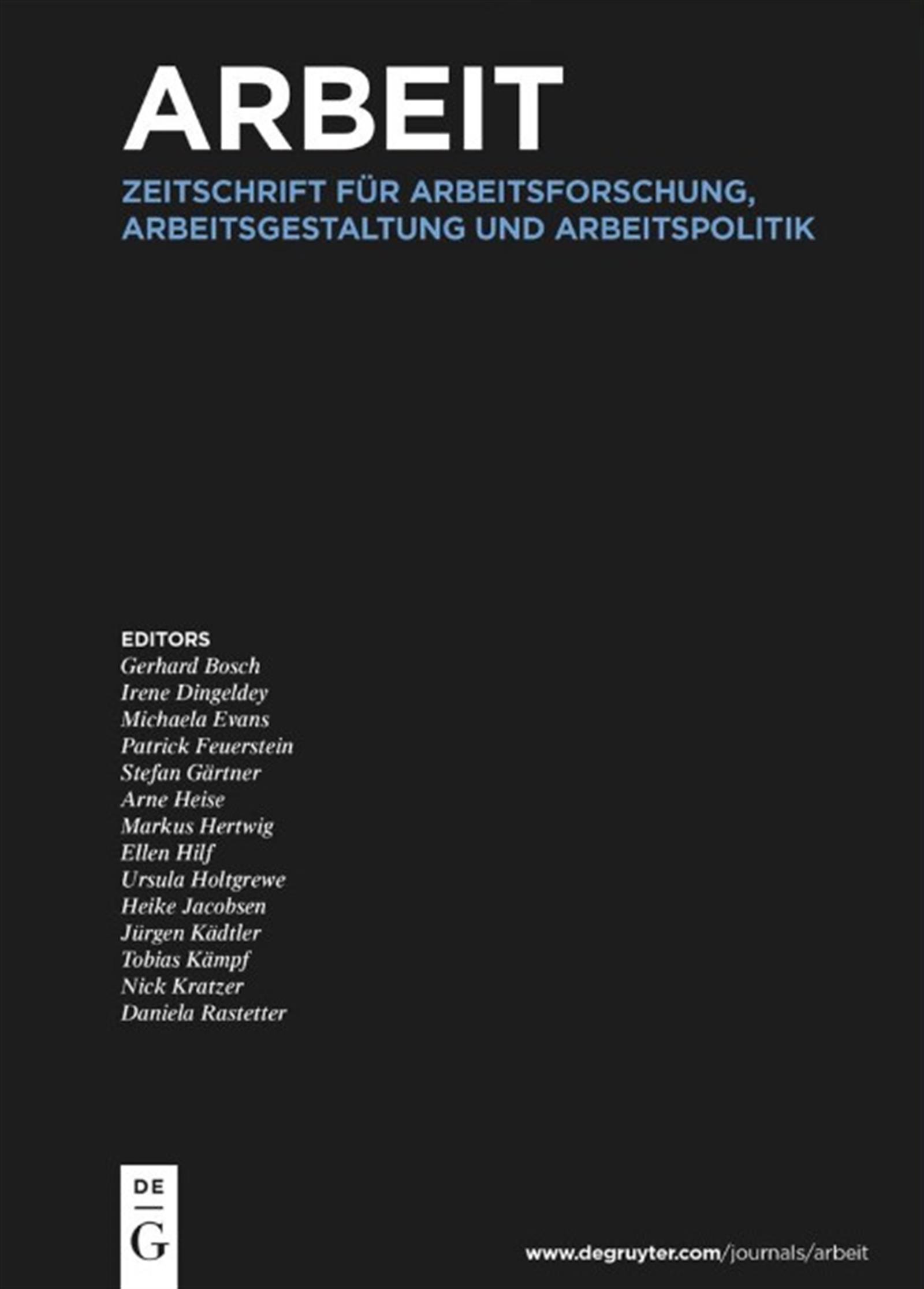 Arbeit ist die führende Fachzeitschrift für alle, die sich fundiert mit der modernen Arbeitswelt auseinandersetzen. Mit interdisziplinären Beiträgen aus Forschung und Praxis bietet sie aktuelle Einblicke in Arbeitsgestaltung, Arbeitsforschung und Arbeitspolitik. Wissenschaftlich fundiert und praxisnah – die perfekte Plattform für Entscheidungsträger, Forscher und Gestalter der Arbeitswelt von morgen.