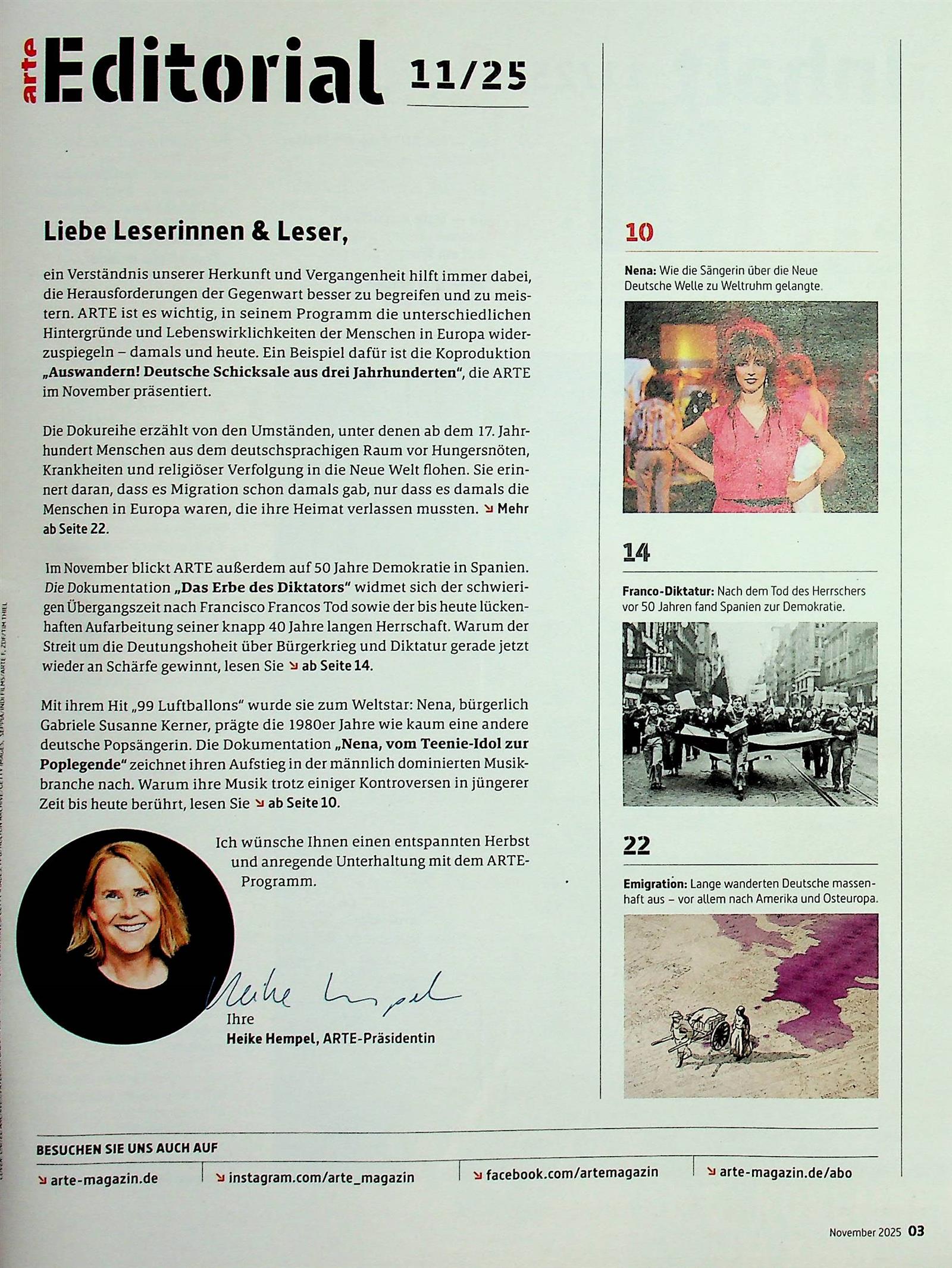 neben dem Programm an sich wird arte Magazin durch Beiträge renommierter Journalisten und Schriftsteller, sowie eine Kolumne über die Eigenheiten unserer französischen Nachbarn bereichert.