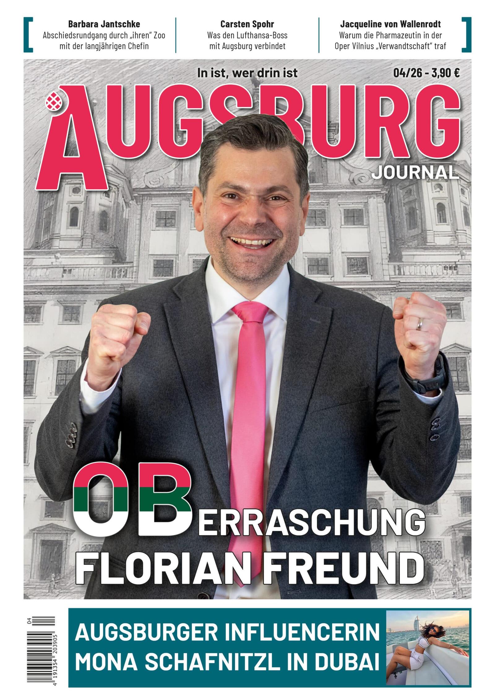 Das Augsburg Journal ist Schwabens größtes Magazin für Society, Politik, Wirtschaft und Lebensqualität. Jeden Monat erfahren die Leser alles über die interessantesten Menschen sowie die wichtigsten Trends und Themen auf durchschnittlich 132 Seiten pro Ausgabe. Das Team liebt und lebt Augsburg, und begleitet die Leser dabei, ihre Stadt neu zu entdecken. Informativ und unterhaltsam werden Themen aufgegriffen, die die Stadt bewegen.