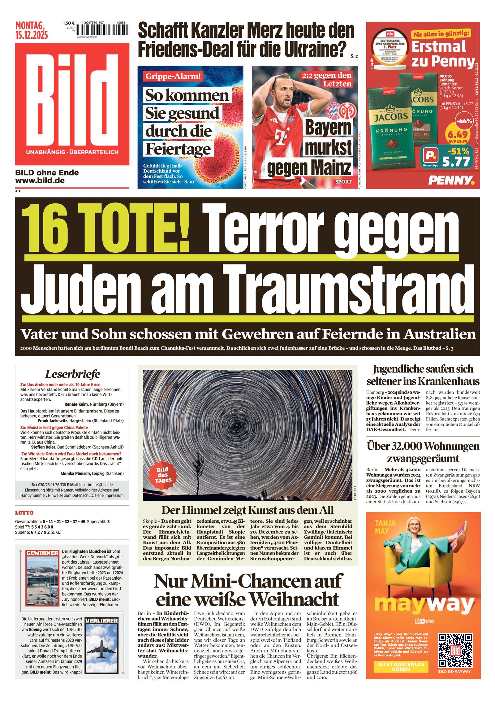 Ein Terroranschlag auf ein Chanukka-Fest in Sydney endet in Panik und Tod. Vater und Sohn eröffnen das Feuer auf Feiernde, 16 Menschen sterben, darunter ein Kind.