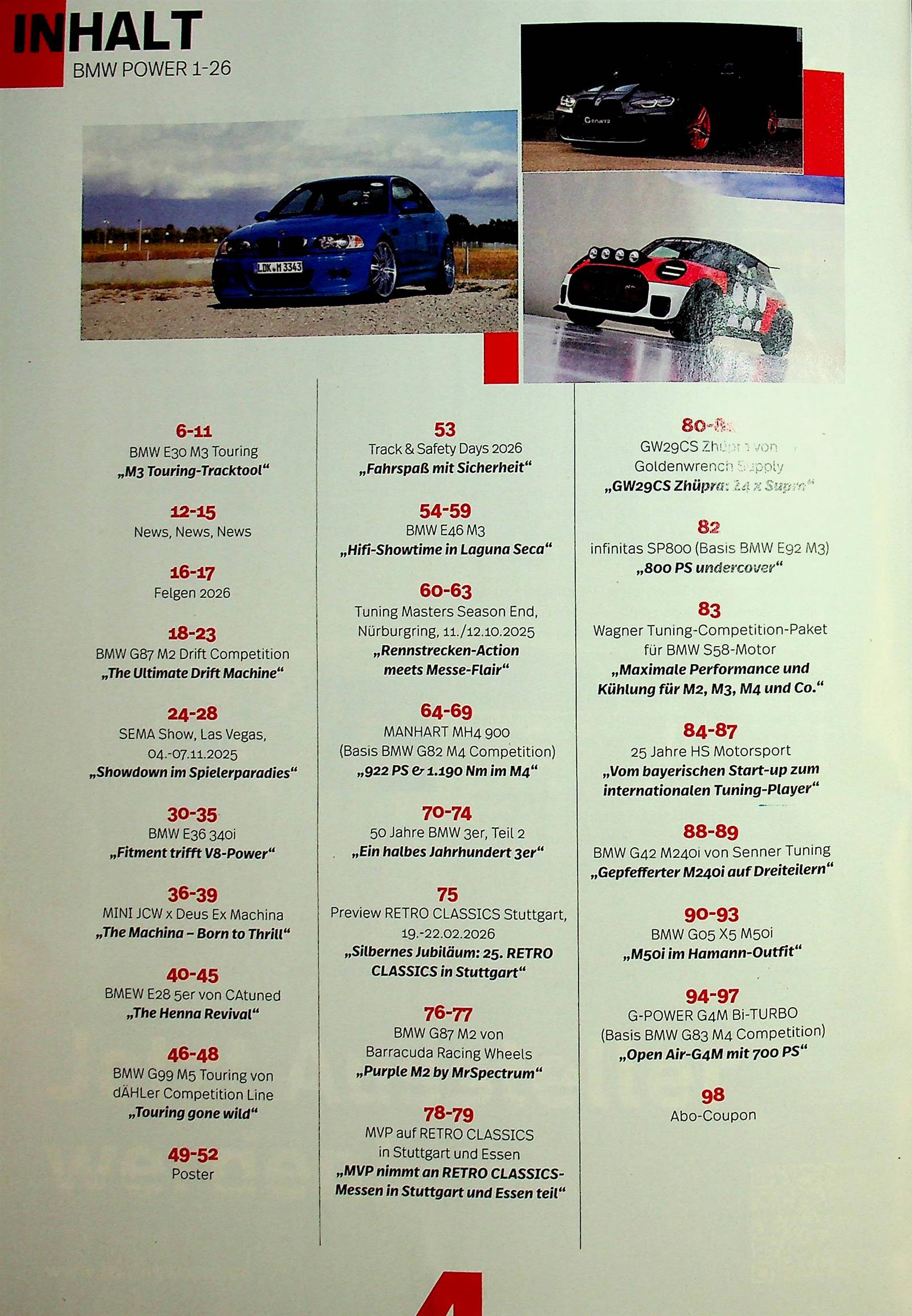 Das absolute Szene-Blatt der BMW-Community! BMW Power ist Marktführer und berichtet alle 2 Monate auf 100 Seiten aus der facettenreichen Tuning-Welt rund um die Modelle aus München.