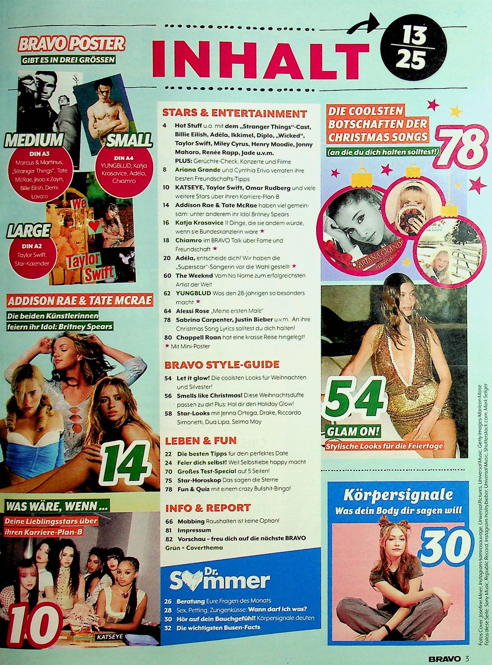 Da ich schon im "Omaalter" bin, gehöre ich nicht zum Leserkreis der "Bravo". Aber schon meine Tochter und jetzt meine Enkeltochter sind von der zeitschrift begeistert und deshalb das Abo für meine Enkelin als Weihnachtsgeschenk. Sie hat sich sehr gefreut.