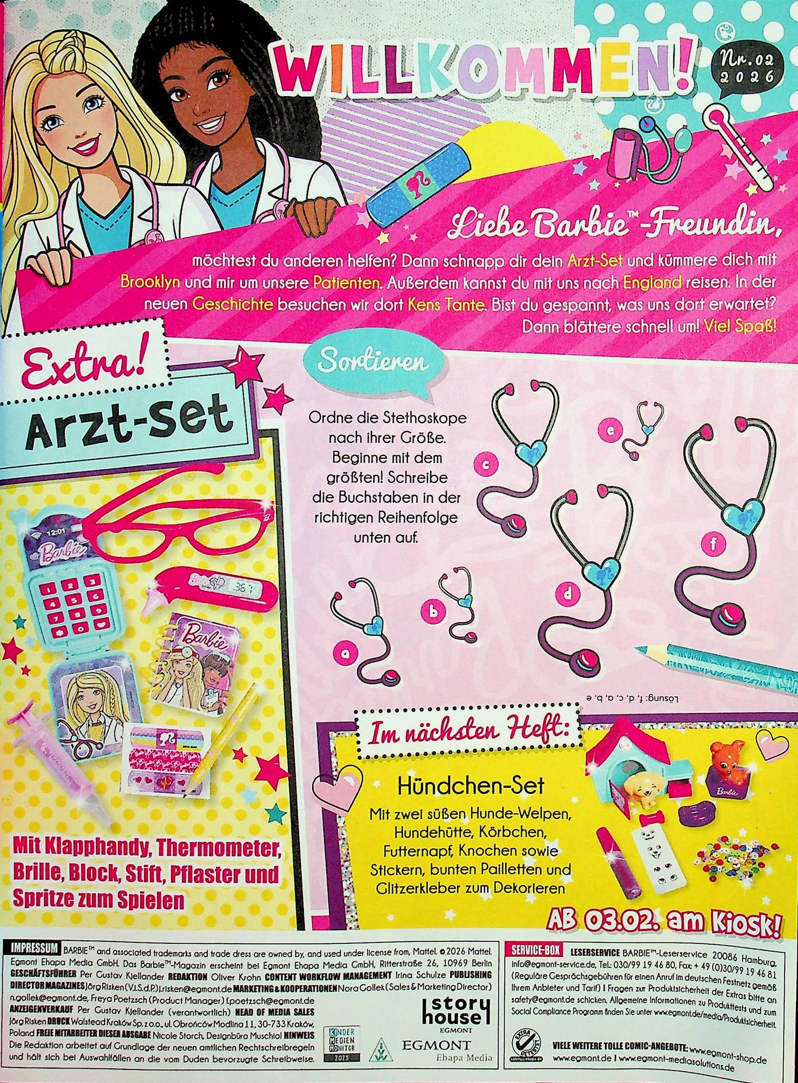 Die Zeitschrift Barbie bietet eine Vielzahl von Inhalten, die sich an junge Mädchen richten und die Fantasie anregen. Im Mittelpunkt stehen spannende Geschichten über die Abenteuer der ikonischen Puppe und ihrer Freunde, die oft in inspirierenden Umgebungen spielen. Zusätzlich enthält die Zeitschrift kreative Aktivitäten, wie Mal- und Bastelanleitungen, die es den Leserinnen ermöglichen, selbst kreativ zu werden. Auch Modetipps und Styling-Ideen sind Teil des Magazins und sprechen den Modegeschmack der Zielgruppe an. Ein weiterer wichtiger Aspekt sind Artikel, die positive Werte wie Freundschaft, Selbstvertrauen und Kreativität vermitteln. Die Verbindung von Unterhaltung und Bildung sorgt dafür, dass die Zeitschrift sowohl informativ als auch unterhaltsam ist.