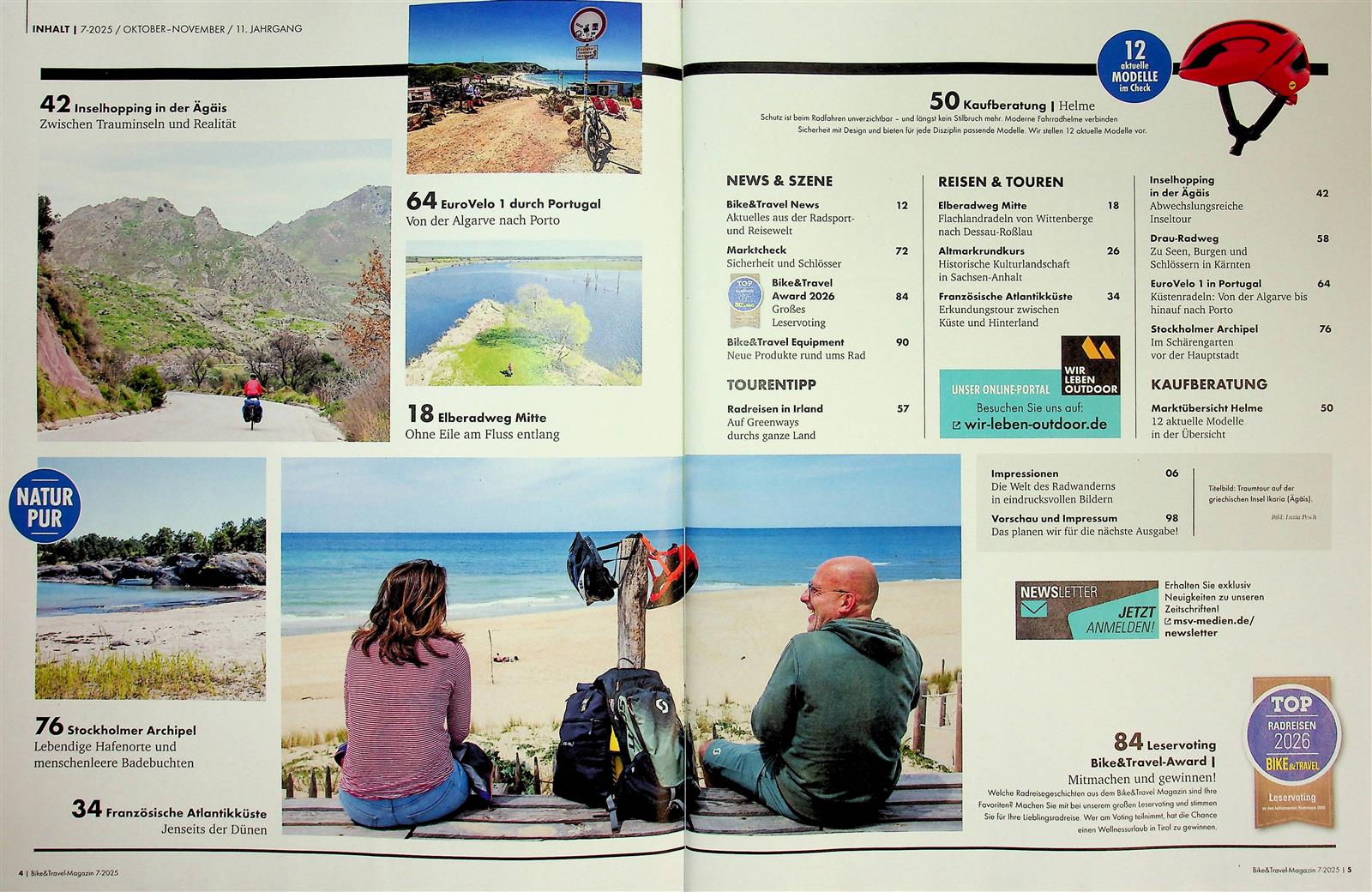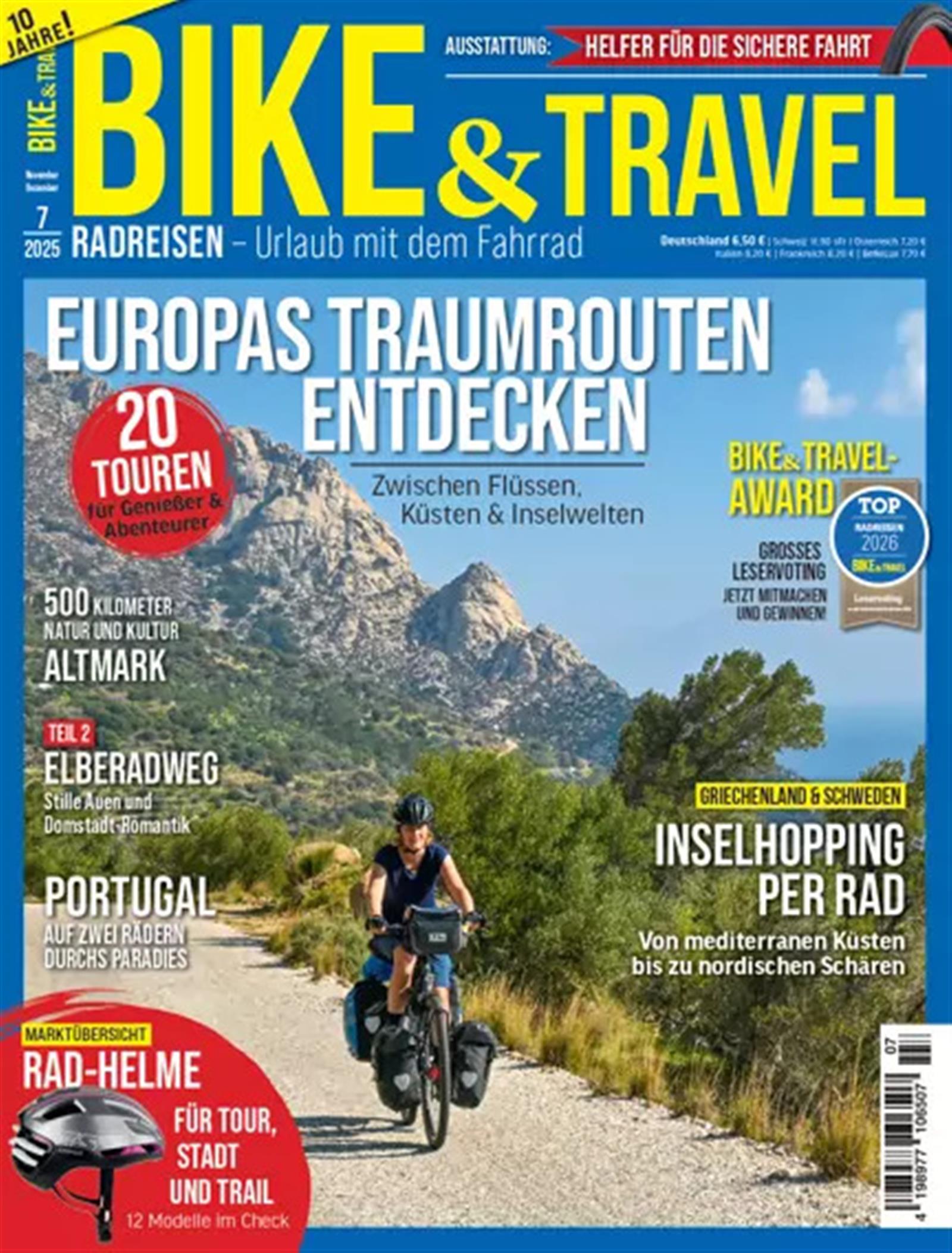 Bike & Travel ist die Zeitschrift für alle, die gerne mit dem Fahrrad auf Entdeckungsreise gehen. Aktiv erkunden die Fahrradfahrer*innen, mit ihrer Begeisterung für Natur und Kultur, Berge, Täler und Flusslandschaften, aber auch Städte und Metropolen. Mit eindrucksvollen Tourenberichten inspiriert Bike & Travel den Leser und zeigt ihm die Vielfalt der Aspekte des Radfahrens auf.