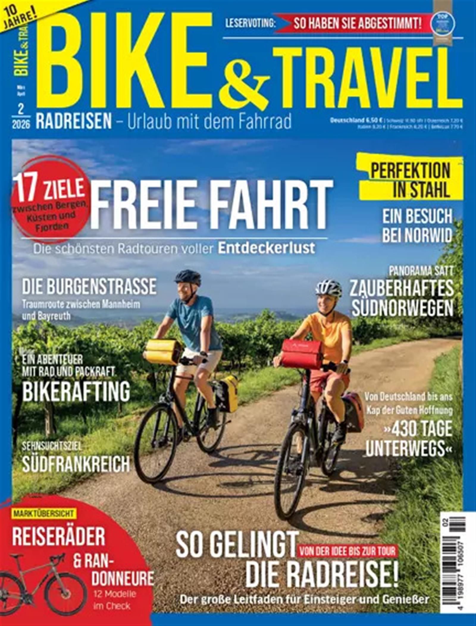Von allen Reiseradmagazinen mein liebstes. Auch wenn es etwas zu viel Werbung von div. Regionen enthält die wie Artikel auftreten, die sind wenigstens klar gekennzeichnet. Die Tests sind so naja (oft zu wenig verschiedene Marken), die Reiseberichte sind dafür die individuellsten und lesen sich sehr authentisch. :-)