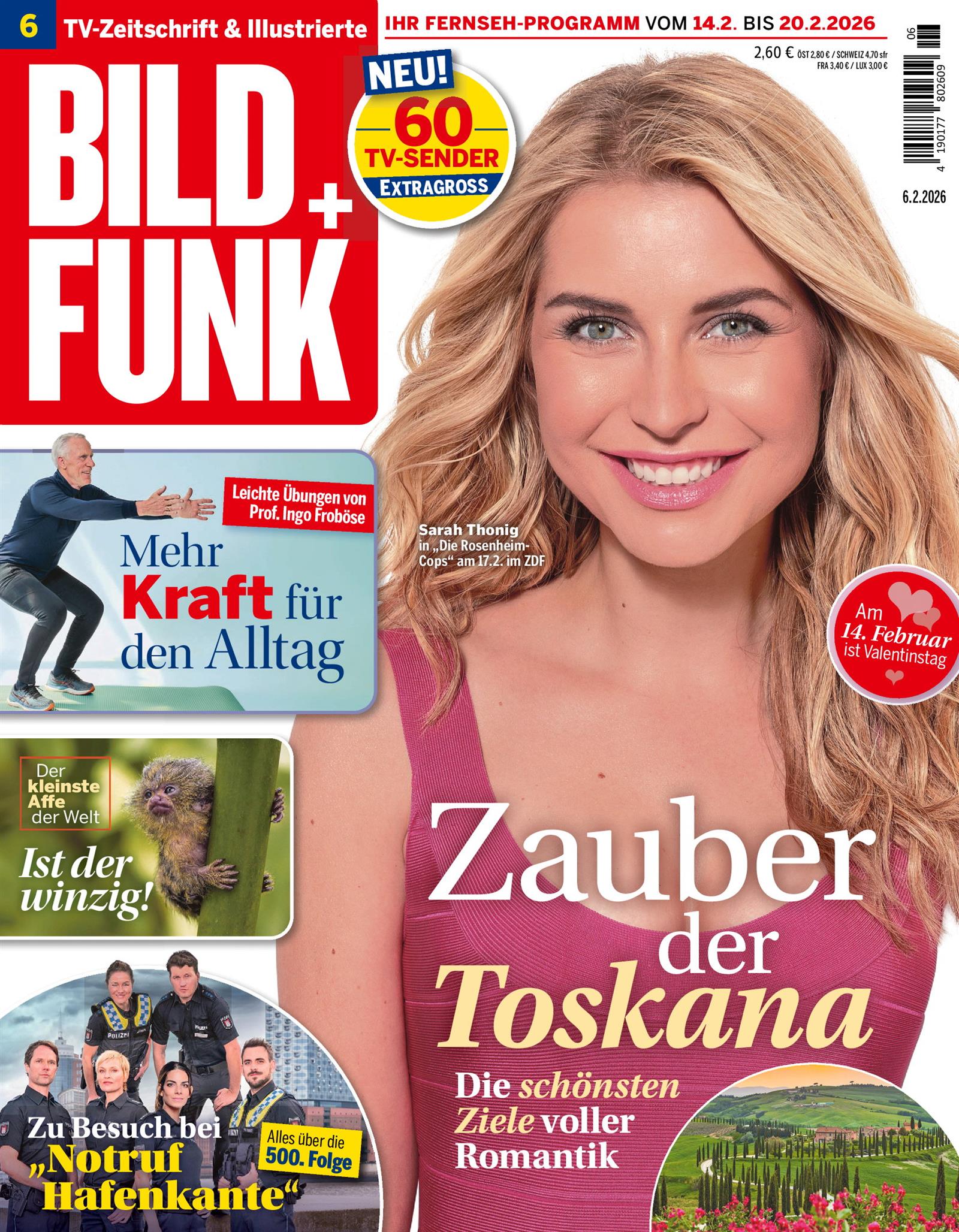 Die Fernsehzeitschrift Bild + Funk mit Digital Extra informiert über das TV-Angebot der kommenden Woche. Öffentlich-rechtliche, Private und Dritte Programme, bis hin zu den relevantesten Kanälen der Nachbarländer sind auf 12 Seiten täglich im Magazin aufgelistet. Altersangaben und Symbole bieten Orientierung und Entscheidungshilfe in der großen Auswahl an Sendungen.