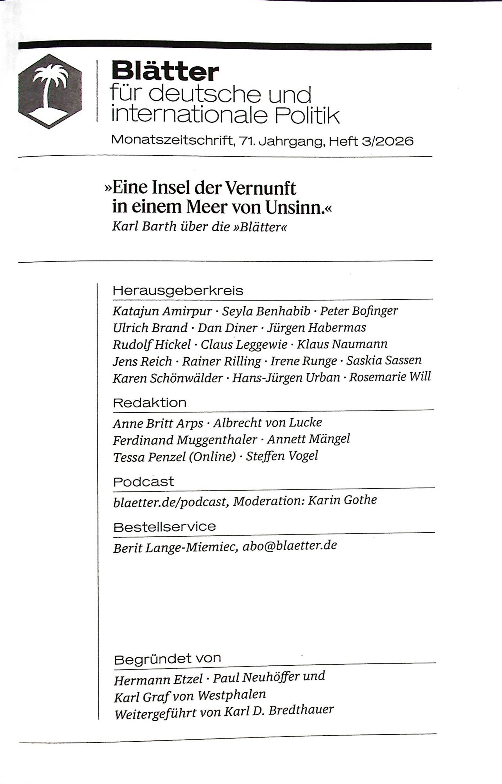 Der Artikel analysiert das deutsche Wahljahr 2026 als Wendepunkt. Albrecht von Lucke beschreibt den Kampf der FDP ums politische Überleben bei den Landtagswahlen in Baden-Württemberg und Rheinland-Pfalz. Gleichzeitig wird der Aufstieg der AfD, besonders in den neuen Bundesländern, als zentrale Herausforderung für das etablierte Parteiensystem thematisiert. Die Wahlen im Südwesten gelten als Indikator für die Radikalisierung des Bürgertums und die Zukunft von CDU und Grünen.