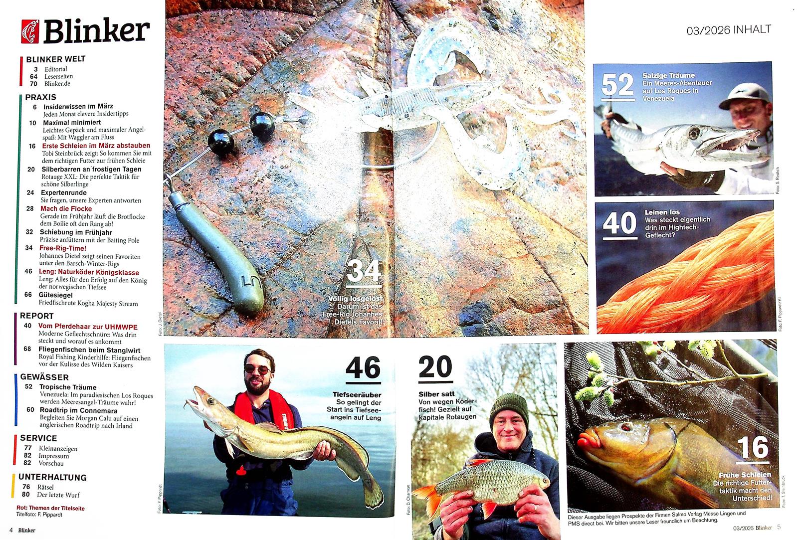 Wie werden bestimmte Angeltechniken eingesetzt, der Blinker verrät es und gibt gleichzeitig preis, wann und wo beste Fangaussichten bestehen. Spannende Reportagen, Erlebnisberichte und Fotostrecken sind zudem fester Bestandteil des Magazins. Gern begeben sich die Blinker-Redakteure in den Außeneinsatz und tragen faszinierende Geschichten und Bilder zusammen, die einfach pure Leidenschaft für das Anglerhobby ausdrücken. Und da der Blinker so nah dran ist an der Anglercommunity, ist diese natürlich auch immer wieder selbst in den Ausgaben vertreten – nicht zuletzt durch die kapitalsten Fänge – samt Belegfotos.