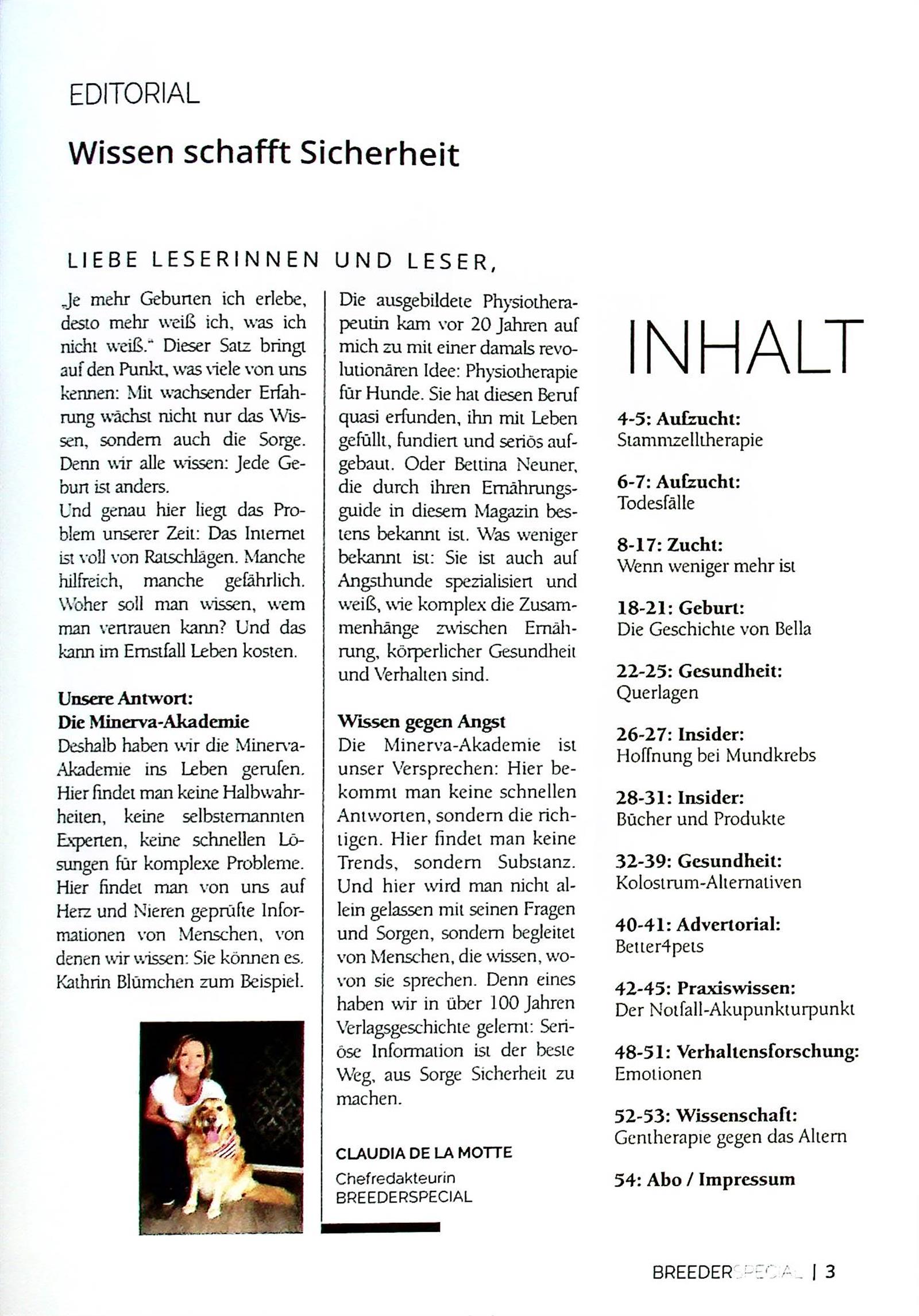 Die BREEDER SPECIAL ist eine renommierte Spezialzeitschrift zum Thema Hundezucht. Das Redaktionsteam vermittelt wichtige Informationen auf einem hohen wissenschaftlichen Niveau, die dennoch auch für den medizinischen Laien verständlich bleiben.