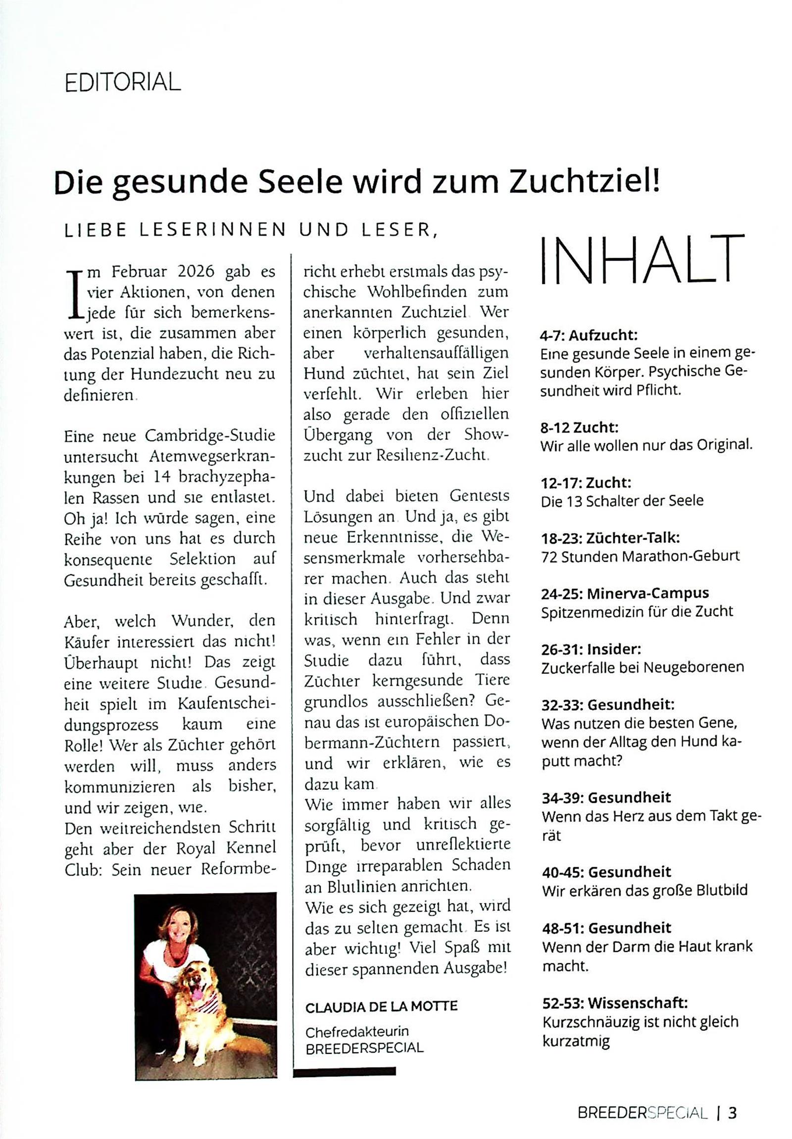 Die BREEDER SPECIAL ist ein Fachmagazin für die Hundezucht auf höchstem Niveau und vermittelt wertvolles Praxiswissen sowie tiermedizinische Erkenntnisse rund um die erfolgreiche Hundehaltung, Zucht und Gesundheit der Vierbeiner.