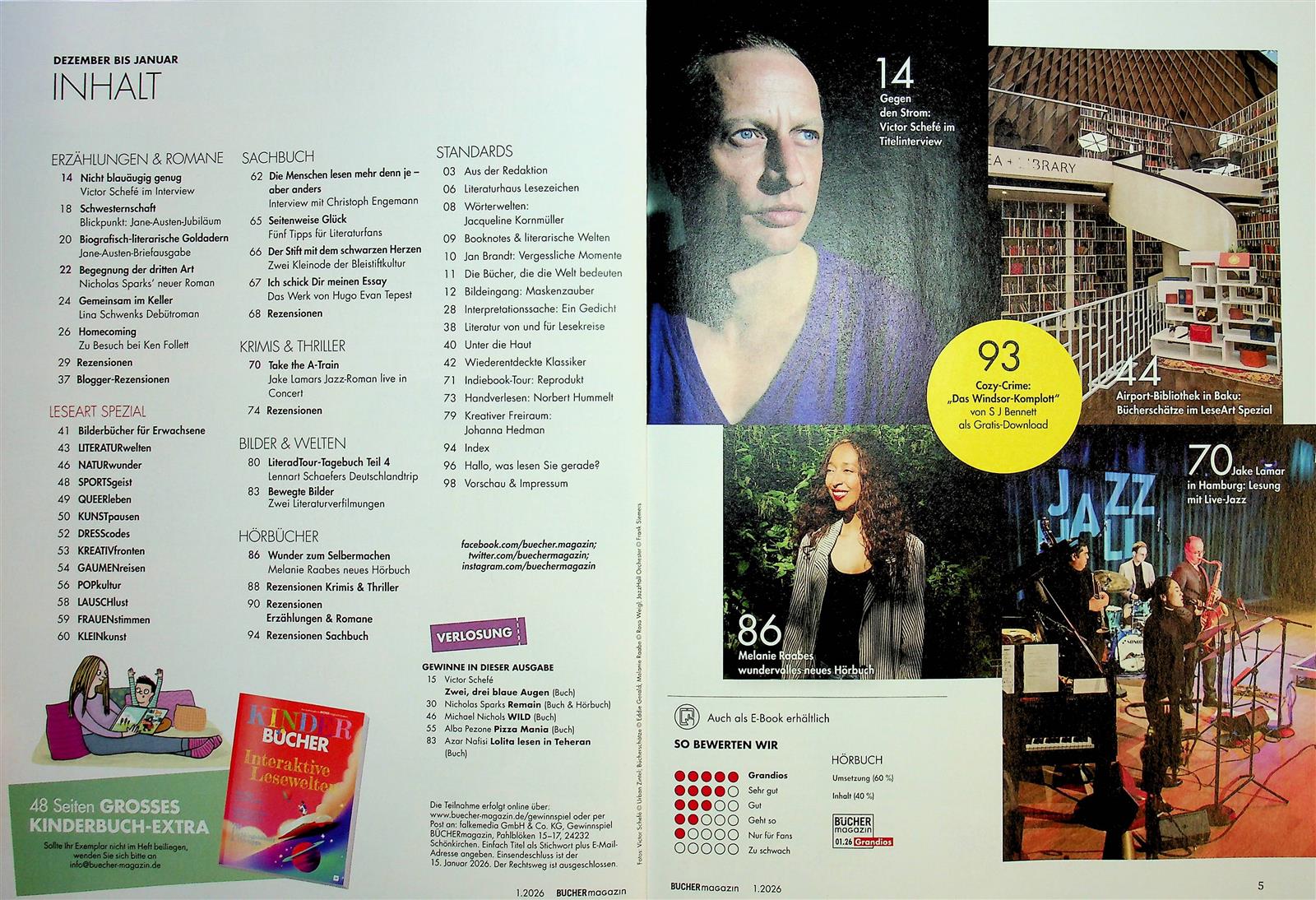 Das Magazin Bücher erscheint seit 2003 und widmet sich der Literatur in all ihren Facetten. Alle zwei Monate werden Neuerscheinungen aus dem gedruckten Bereich oder der Welt der Hörbücher präsentiert.