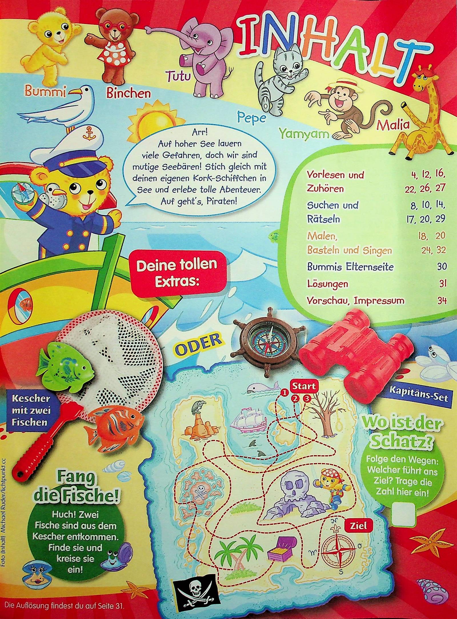 Der wuschelweiche Bär präsentiert seiner Leserschaft eine bunte Spiele-, Lern- und Mitmachwelt, in der nach Herzenslust gestaltet, gebastelt, gespielt, gesungen und geknobelt werden darf. So sieht es zumindest aus. Mit großen und kleinen Ideen bringt er die Kinder spielerisch zum Denken und Handeln. Ein sehr kleines Märchenbuch und eine sehr große Mal-Seite erhöhen das Vergnügen. Das pädagogische Lern- und Spielemagazin vermittelt Kindern im Alter von 3 bis 7 Jahren spielerisch ein grundlegendes Vorschulwissen und lädt sie dazu ein, auf den liebevoll gestalteten Bastel- und Malseiten selbst aktiv zu werden. Vorlesegeschichten und ein Tier-Foto gehören zum festen Bestandteil der Zeitschrift.