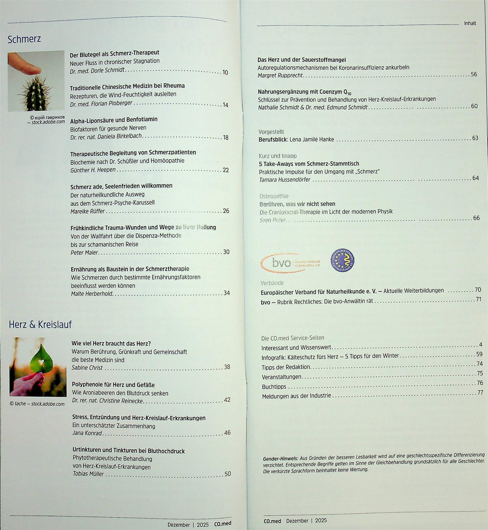 Wer nicht nur sein Fachgebiet vertiefen will, sondern auch eine Gesamtschau der Komplementärmedizin sucht, der findet im Fachmagazin CO.med die geeignete Lektüre.