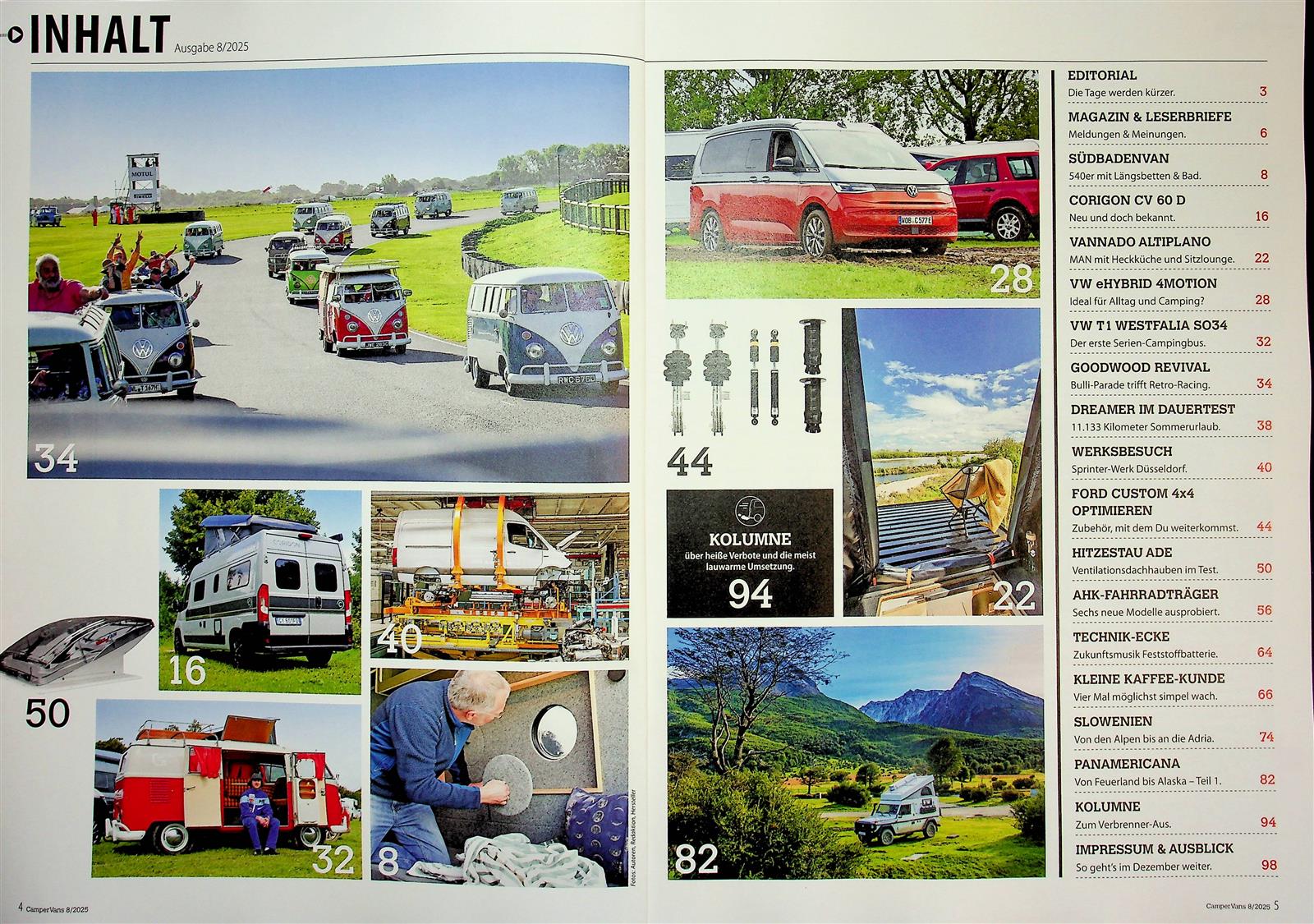 Das Besondere an der Camper Vans Zeitschrift liegt in ihrer einzigartigen Mischung aus Inspiration und praktischen Informationen. Sie richtet sich an Abenteuerlustige und Reisende, die das Leben im Van schätzen und entdecken möchten. Die Zeitschrift bietet spannende Berichte über die neuesten Trends und Entwicklungen in der Camper-Szene, während sie gleichzeitig persönliche Geschichten von anderen Van-Liebhabern erzählt. Ein weiterer Höhepunkt ist die Vielzahl an Reiseberichten, die Leser dazu anregen, neue Ziele zu erkunden und ihre eigenen Abenteuer zu planen. Tipps zur Ausstattung und Umgestaltung von Camper Vans helfen, das Beste aus dem eigenen Fahrzeug herauszuholen. Zudem ist die Zeitschrift eine wertvolle Ressource für DIY-Projekte und kreative Lösungen. Insgesamt schafft es die Camper Vans Zeitschrift, eine lebendige Community von Gleichgesinnten zu fördern, die das Gefühl von Freiheit und Unabhängigkeit auf vier Rädern genießen.