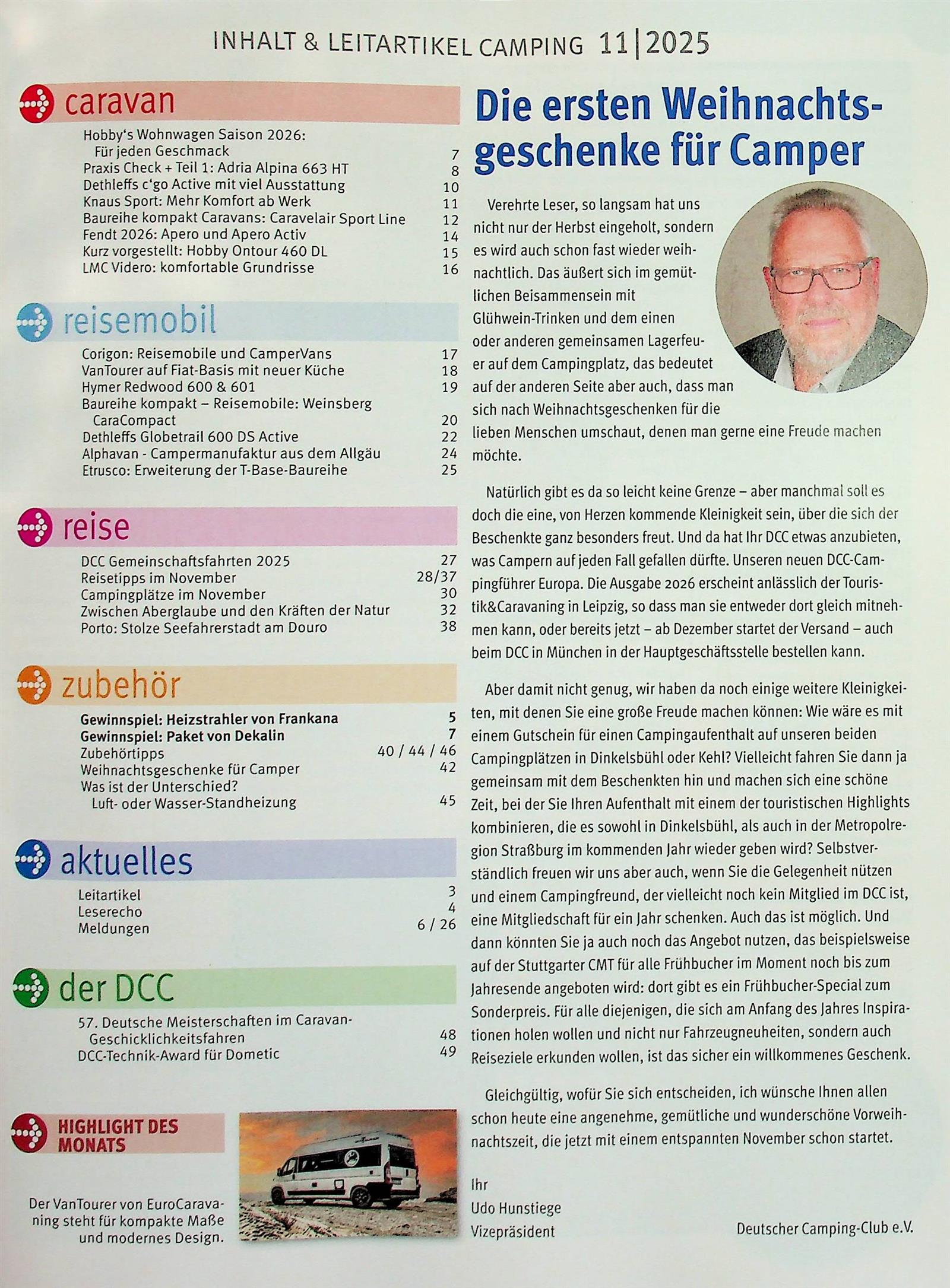 Die Zeitschrift Campingbietet eine breite Palette von Inhalten, die speziell für Camping-Enthusiasten und Outdoor-Liebhaber konzipiert sind. Testberichte zu Zelten, Wohnmobilen und Camping-Ausrüstungen helfen Lesern, fundierte Kaufentscheidungen zu treffen. Zudem werden Reiseziele und Campingplätze in Deutschland und Europa vorgestellt, die sowohl für Familien als auch für Abenteurer geeignet sind. Die Zeitschrift enthält auch nützliche Tipps und Tricks zum Campen, einschließlich Ratschlägen zur Zubereitung von Mahlzeiten im Freien und zur Auswahl der richtigen Ausrüstung. Außerdem werden spannende Interviews mit erfahrenen Campern und Experten geführt, die inspirierende Geschichten und wertvolle Einsichten teilen.