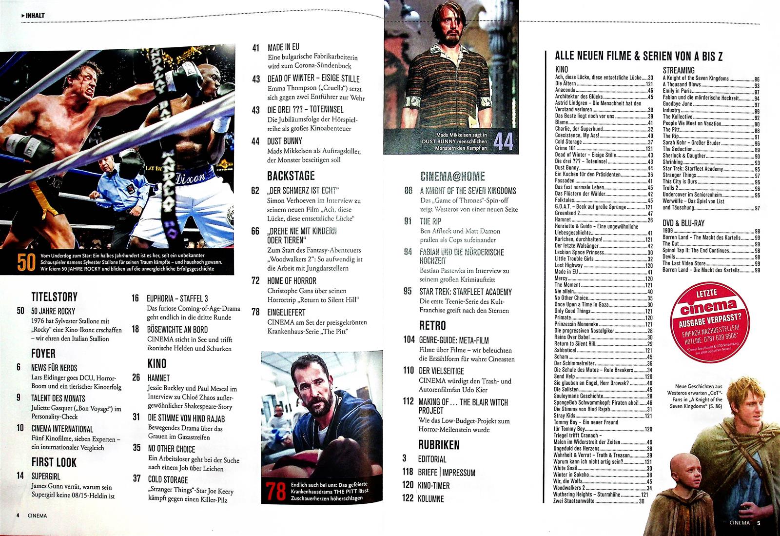 Bereits seit 1975 versorgt die Zeitschrift Cinema ihre Leserschaft mit Nachrichten aus der Welt des Films. Das Magazin erscheint einmal im Monat.