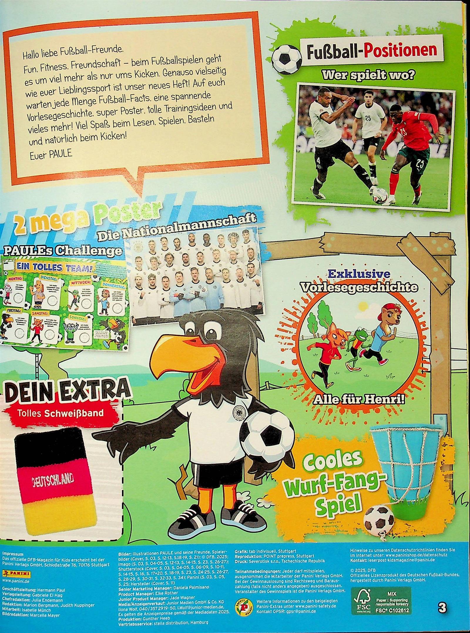 Das DFB Magazin für Kids 2025, genauer gesagt "DFB Fußballspaß mit Paule", ist ein halbjährliches Magazin, das für Kinder im Vor- und Grundschulalter gemacht ist. Es enthält spannende Informationen, Comics, Rätsel und Spiele rund um den Fußball.