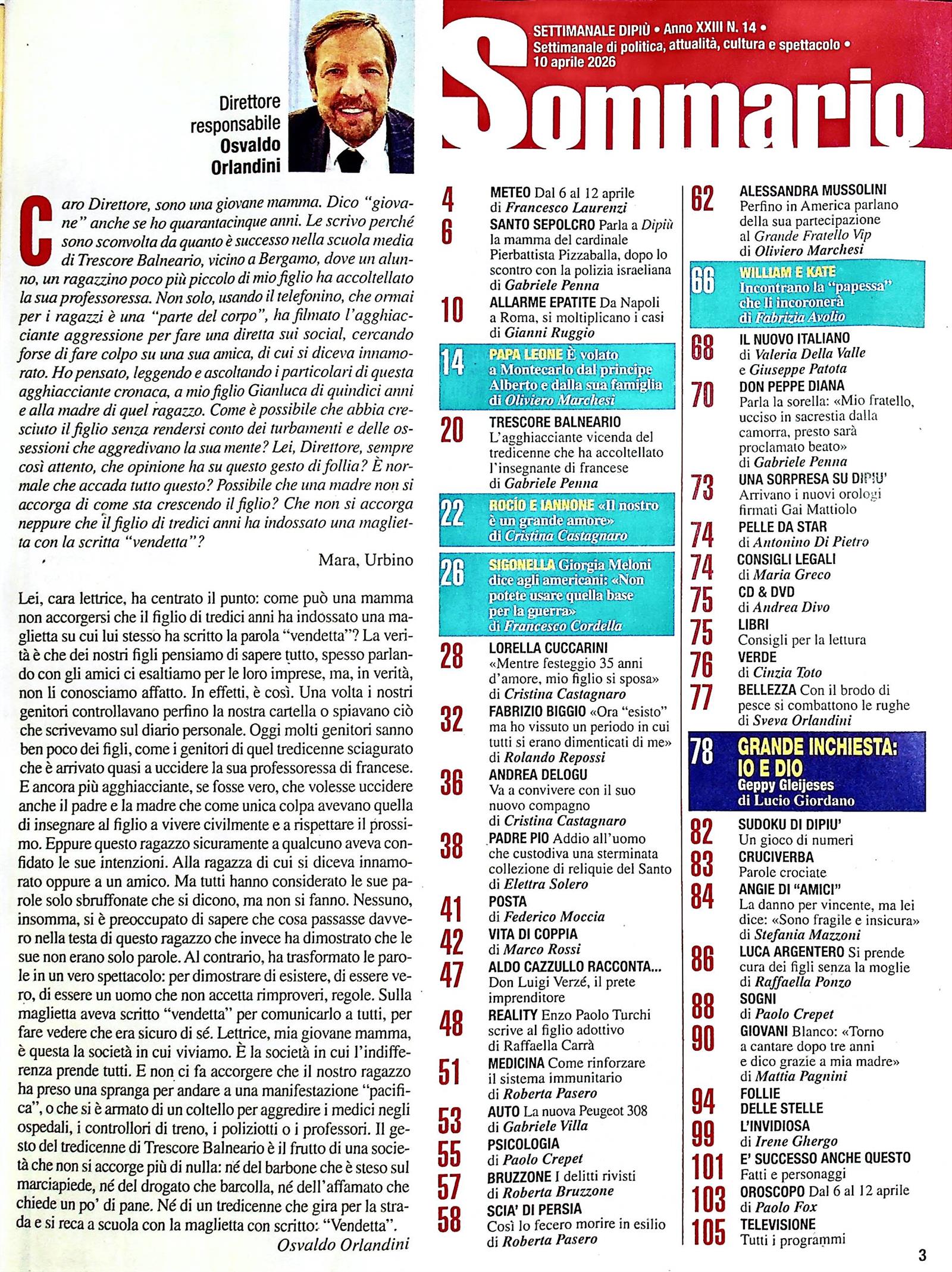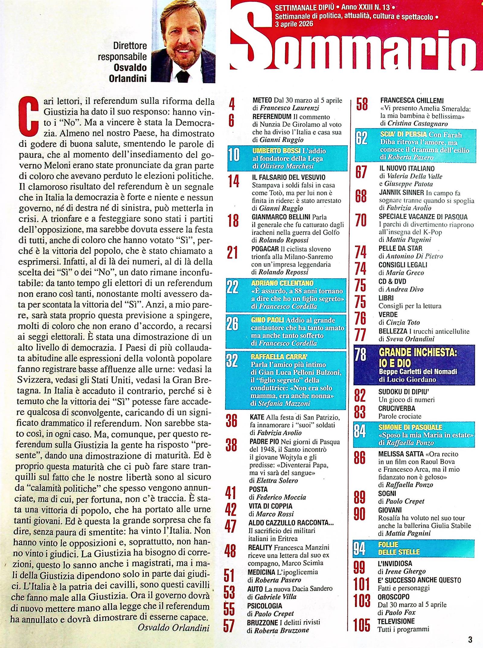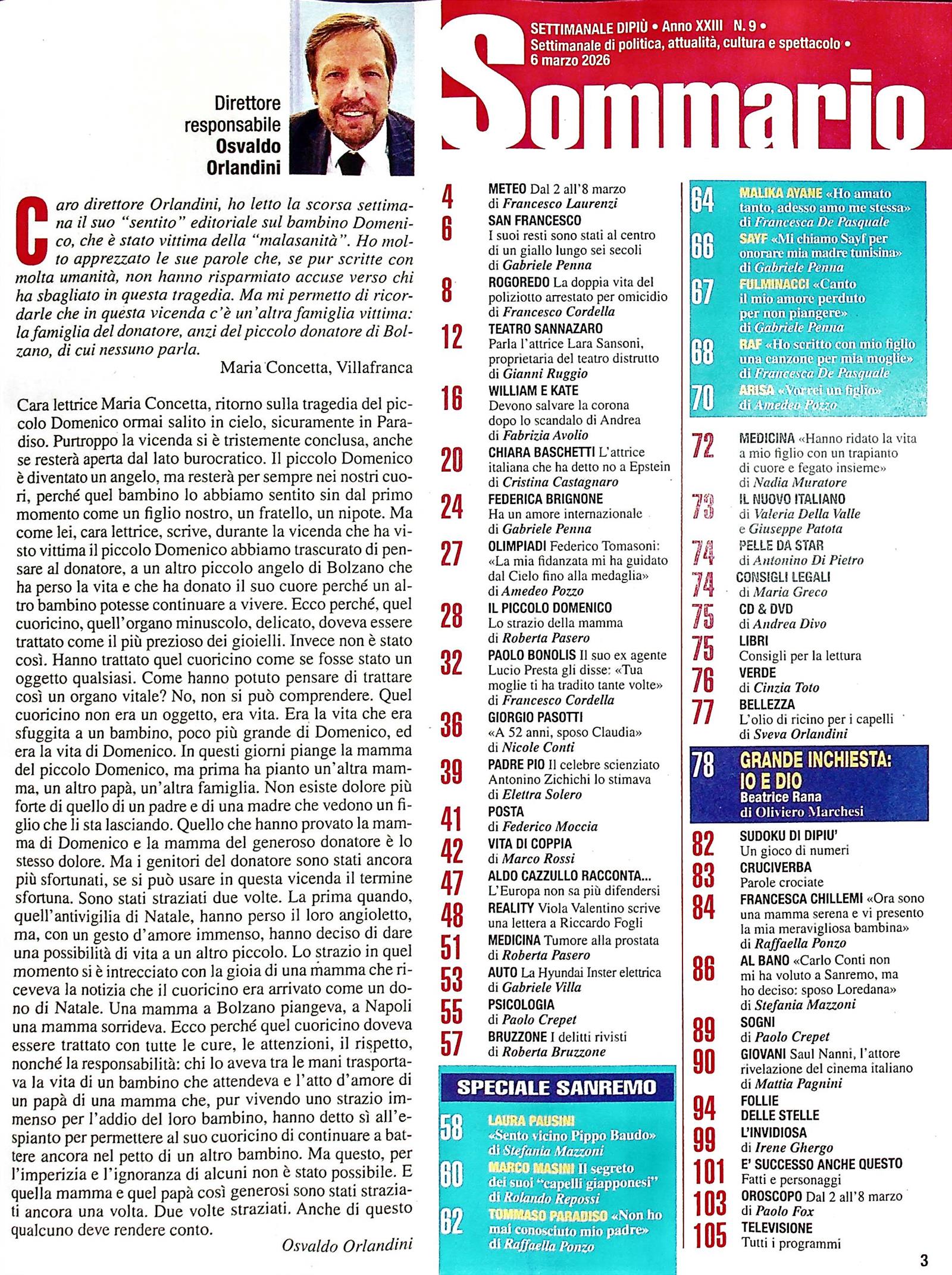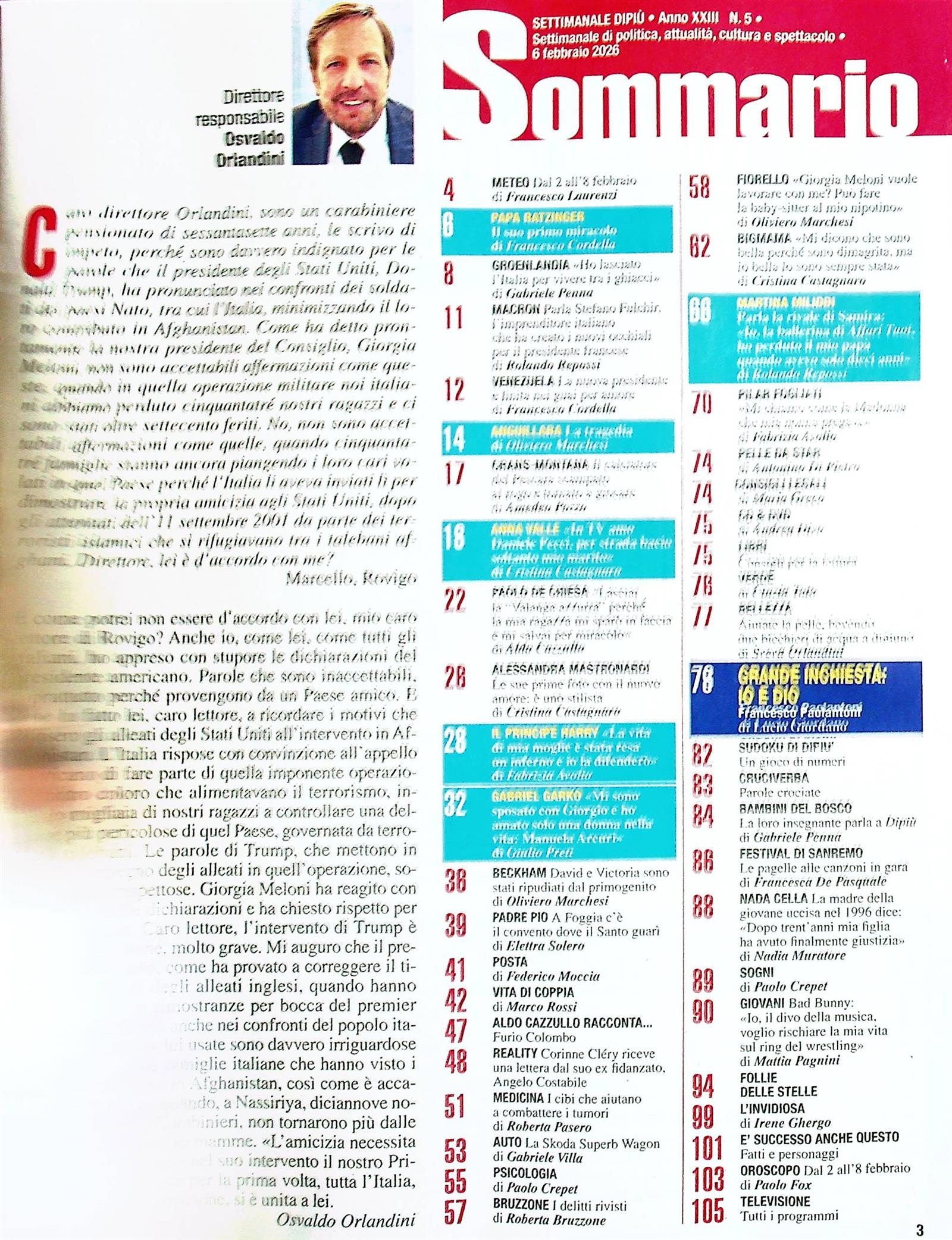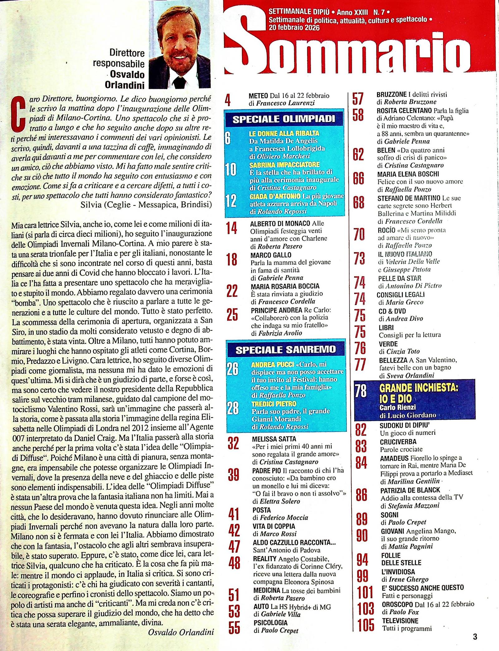 Die DI PIÙ ist das Magazin für Leser, die sich für aktuelle Ereignisse aus dem Bereich der Unterhaltung und Lifestyle interessieren.