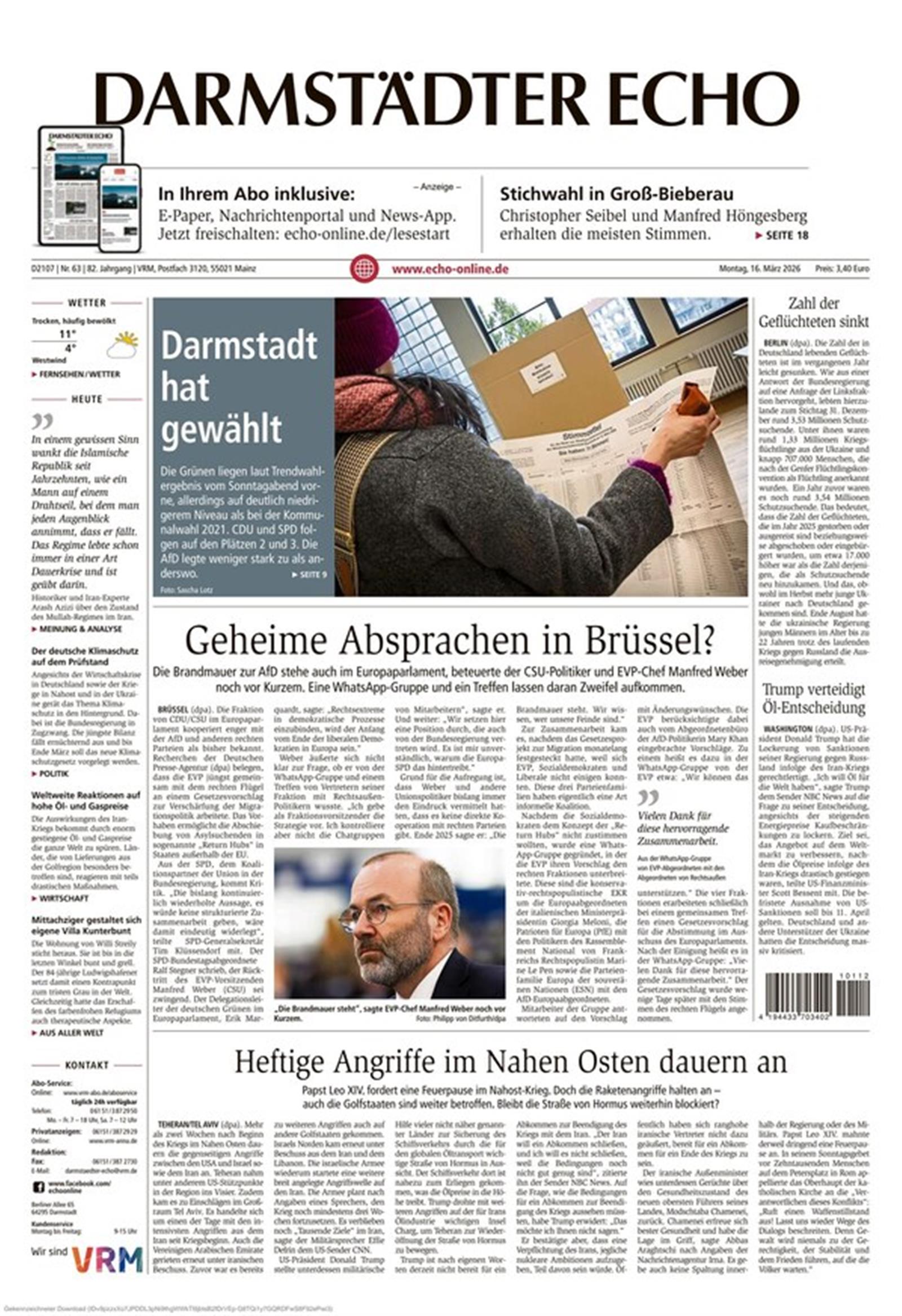 Nachrichten für Darmstadt von Montag bis Samstag im Briefkasten.