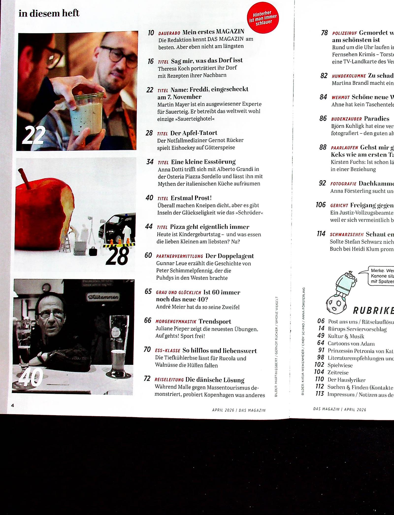 Die FAZ nannte Das Magazin den „New Yorker des Ostens“ – die Zeitschrift steht für eine ungewöhnliche Mischung aus Journalismus und Literatur. Ihr grafischer Ansatz sucht seinesgleichen. Ein fester Stamm an Illustratoren, die regelmäßig für Das Magazin im Einsatz sind, prägen das Gesicht der Zeitschrift, und das nicht nur auf dem Titelblatt, welches immer in einer spannenden grafischen Umsetzung daherkommt.