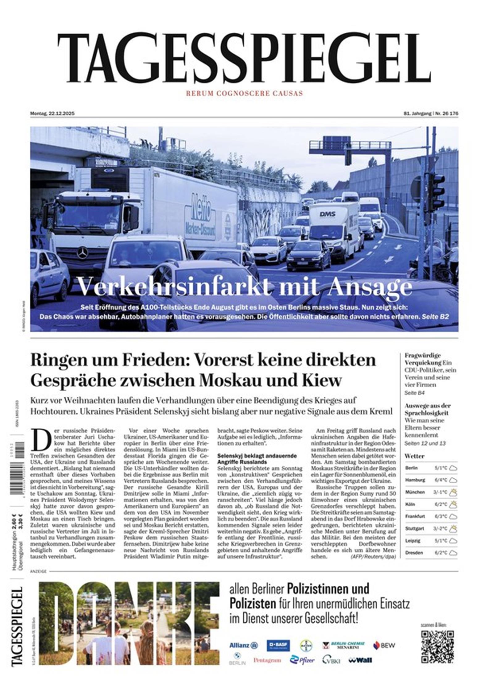 DER TAGESSPIEGEL ist die führende Tageszeitung aus Deutschlands Hauptstadt Berlin und bietet seinen Leser*innen täglich die wichtigsten Neuigkeiten aus Politik, Wirtschaft und Kultur – gut recherchiert und mit großer journalistischer Leidenschaft aufbereitet.
