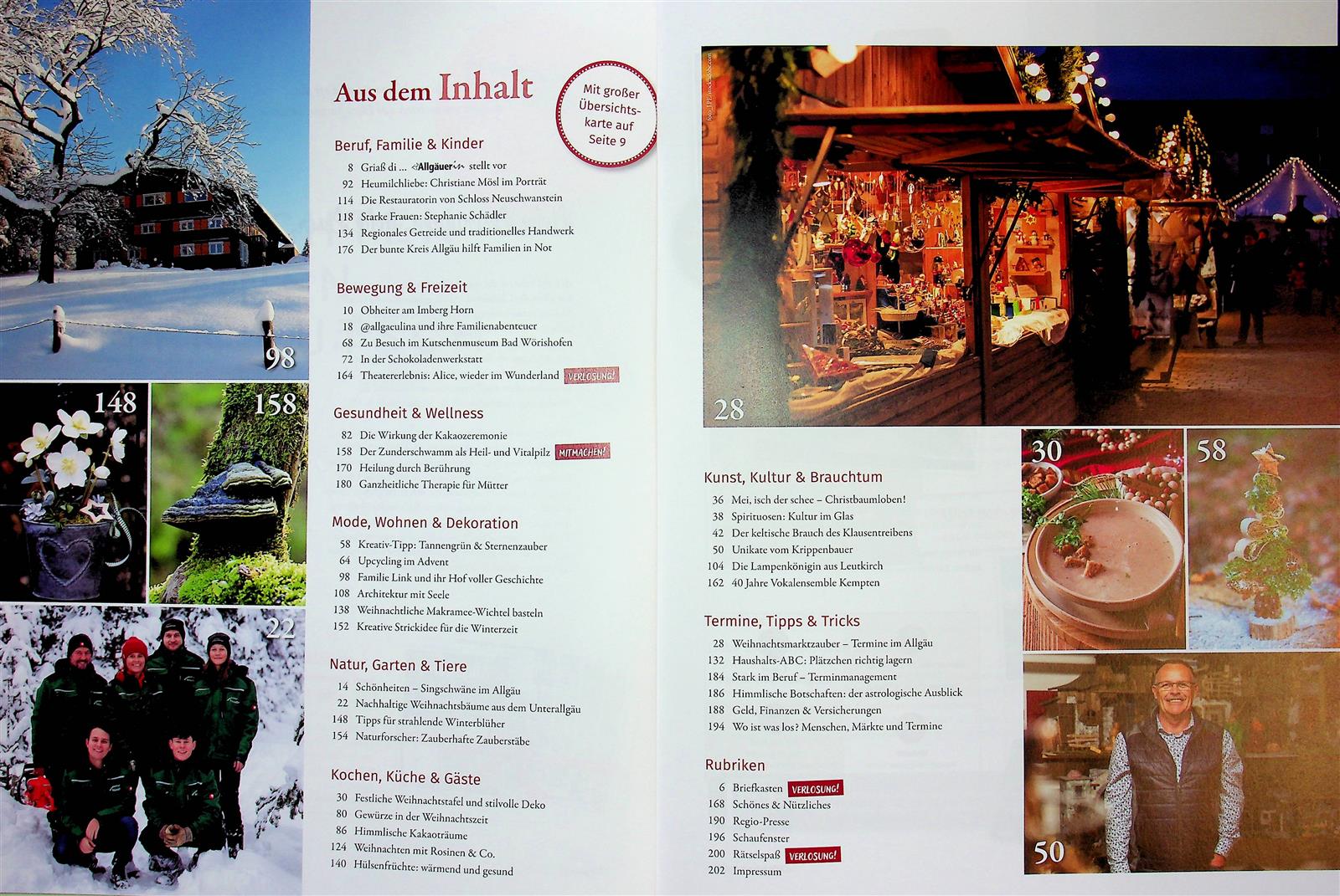 Die AllgäuerinZeitschrift bietet eine Vielzahl von Inhalten, die sich auf das Leben und die Kultur im Allgäu konzentrieren. Leser können sich auf spannende Reportagen und Interviews freuen, die faszinierende Persönlichkeiten aus der Region vorstellen und deren Geschichten erzählen. Darüber hinaus bietet die Zeitschrift informative Artikel über Traditionen, Bräuche und die Kulinarik des Allgäus, die das lokale Flair perfekt einfangen. Ein weiterer Schwerpunkt liegt auf Freizeitaktivitäten und Reiseempfehlungen, die Leser dazu anregen, die vielfältigen Möglichkeiten der Region zu entdecken. Ob Wandern, Skifahren oder kulturelle Veranstaltungen, die Allgäuerin inspiriert ihre Leser, das Allgäu in all seinen Facetten zu erleben.
