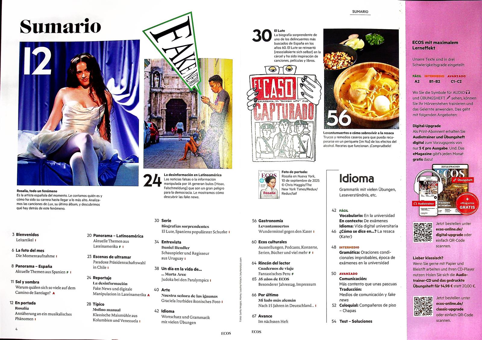 Unter dem Namen Ecos erscheint einmal monatlich ein Sprachmagazin zur Verbesserung der Spanischkenntnisse. Der Name bedeutet übersetzt soviel wie „Echo“ oder auch „Resonanz“ und passt damit bestens zu dem seit 1991 erscheinenden Heft.
