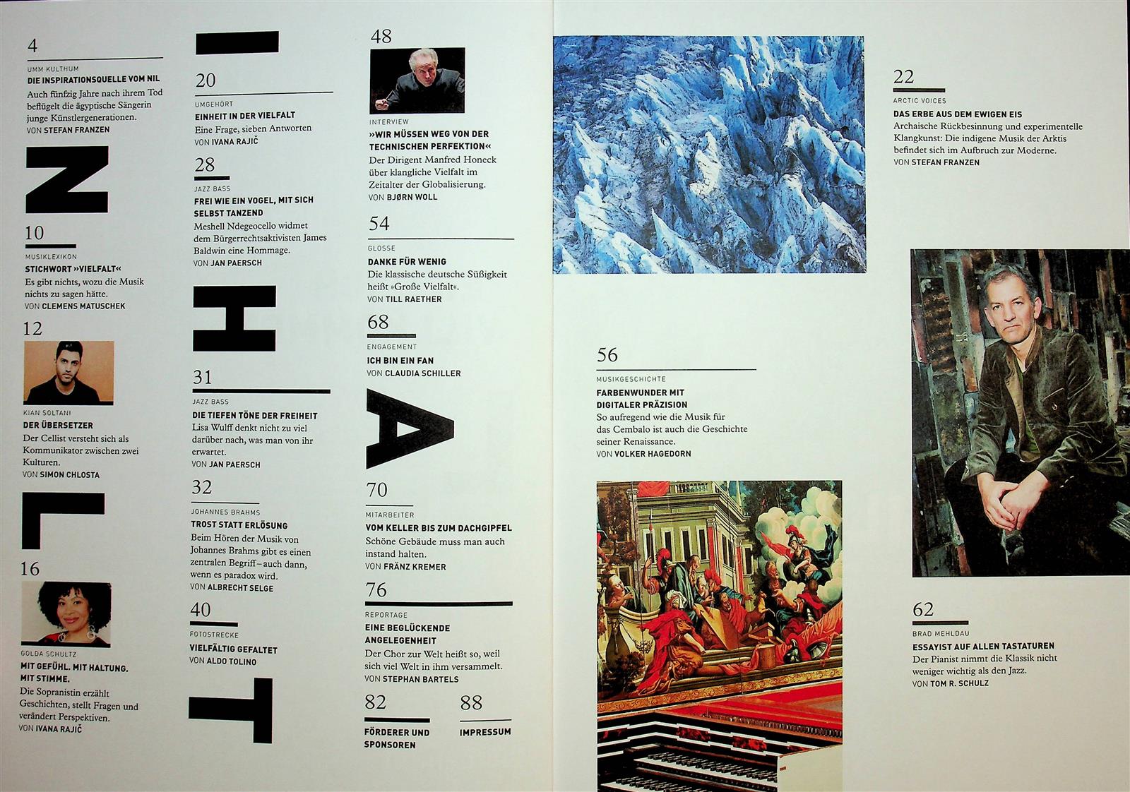 Rund um die Elbphilharmonie gibt es viel zu erzählen: über die Musik, die Künstler:innen, die darin auftreten, und über die Stadt, die sie umgibt. Diesen und weiteren Themen widmet sich das Elbphilharmonie Magazin - sowie natürlich dem laufenden Konzertprogramm.