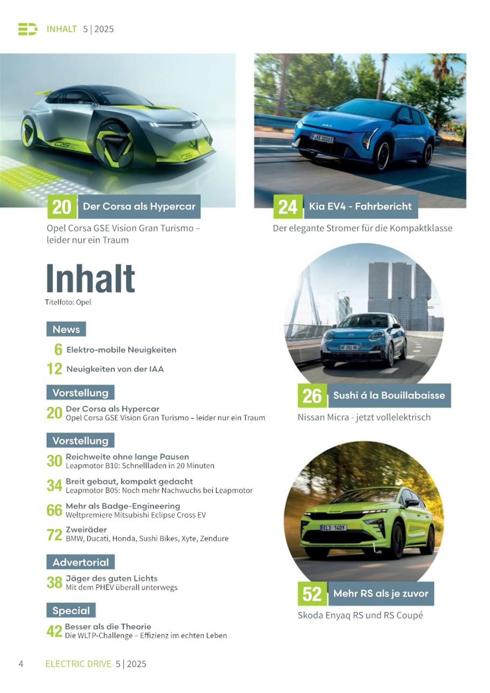 Die Electric Drive informiert über alle Aspekte der Elektromobilität, mit dem Schwerpunkt auf Elektroautomobilen, egal ob batterieelektrisch, hybrid oder mit Wasserstoff betrieben. In spannenden Seitenblicken berichtet das Magazin auch über das elektrische Fahren von Zweirädern und Booten.