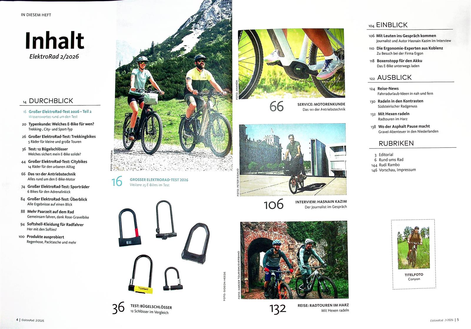 Stolze Summe: 88 E-Bikes finden sich im Großen ElektroRad-Test 2026. Nach Teil 1 mit 63 Rädern in der Vor-Ausgabe sind es nun nochmal 25 E-Bikes aus den Kategorien Trekking, City und Sport. Und alle, wirklich alle mussten durch den Härtetest.