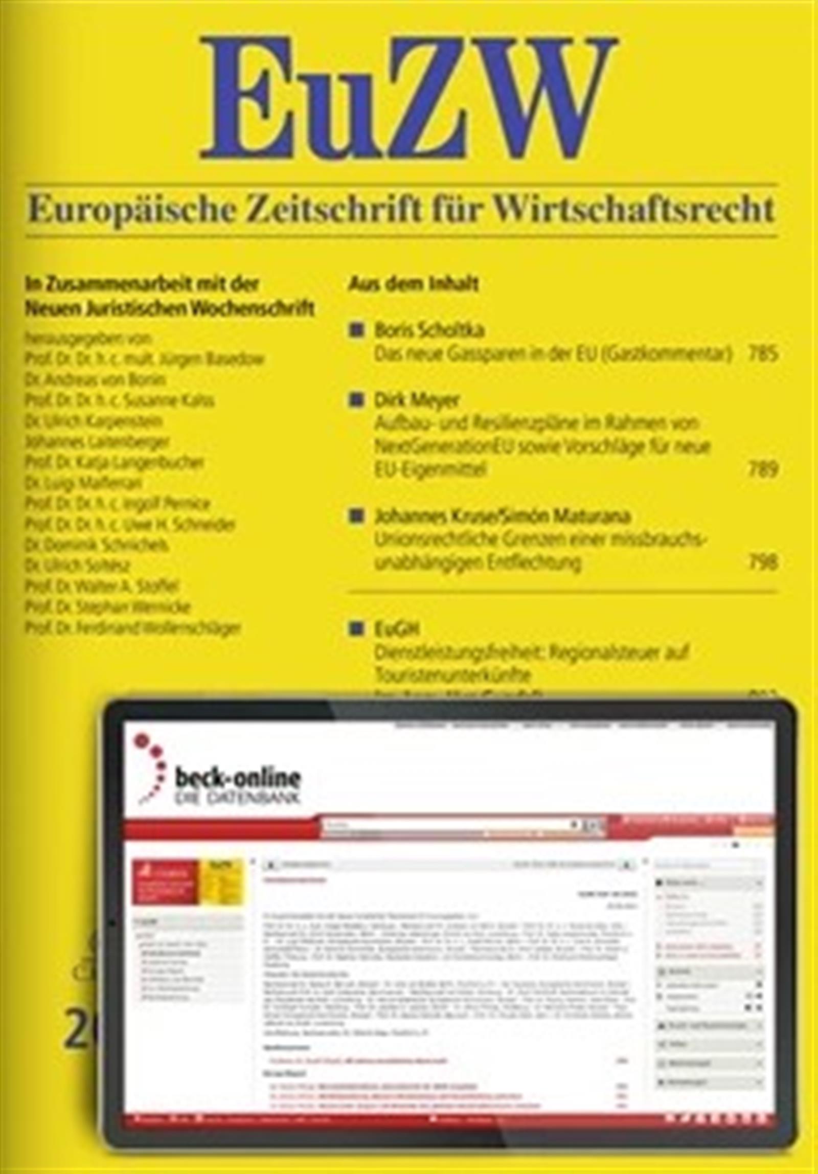 EuZW erscheint vierzehntägig in Zusammenarbeit mit der NJW, der führenden juristischen Fachzeitschrift Deutschlands und ist damit die aktuellste Fachzeitschrift für Entscheidungen auf allen Gebieten des europäischen Wirtschaftsrechts.