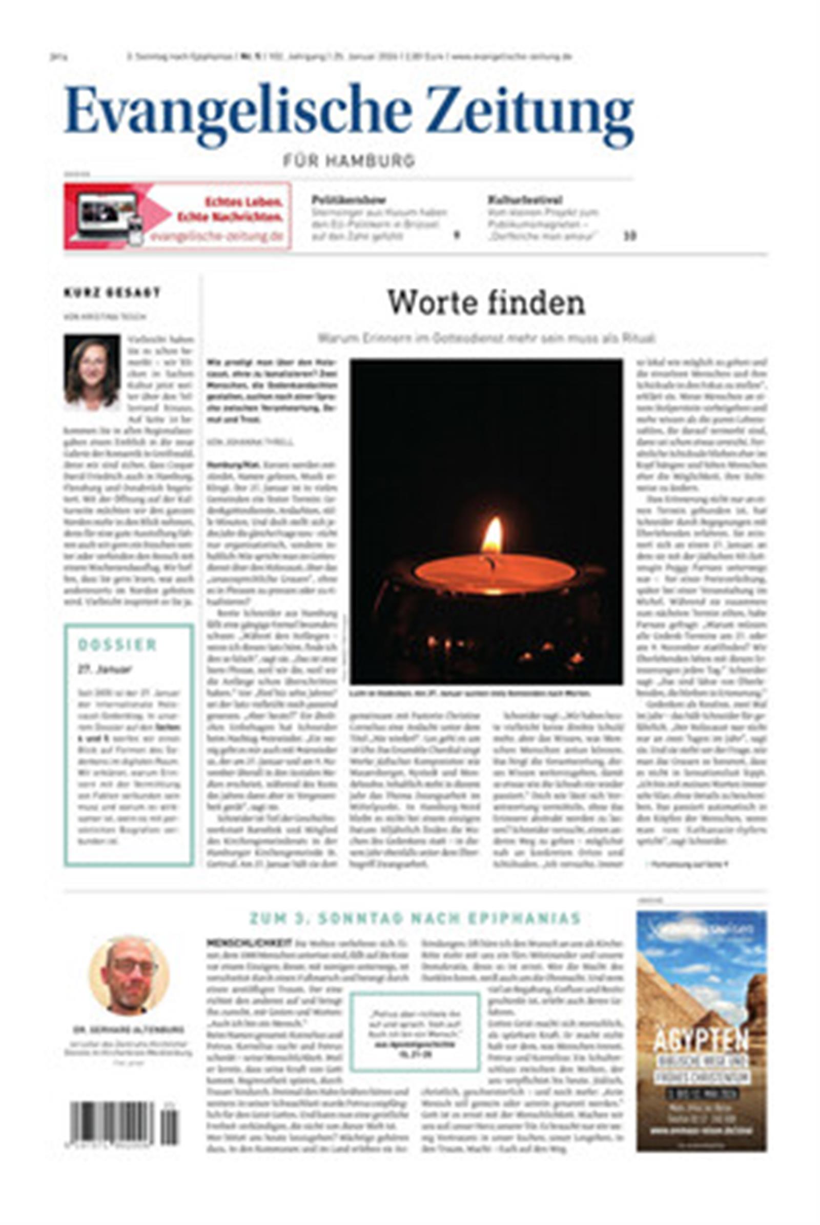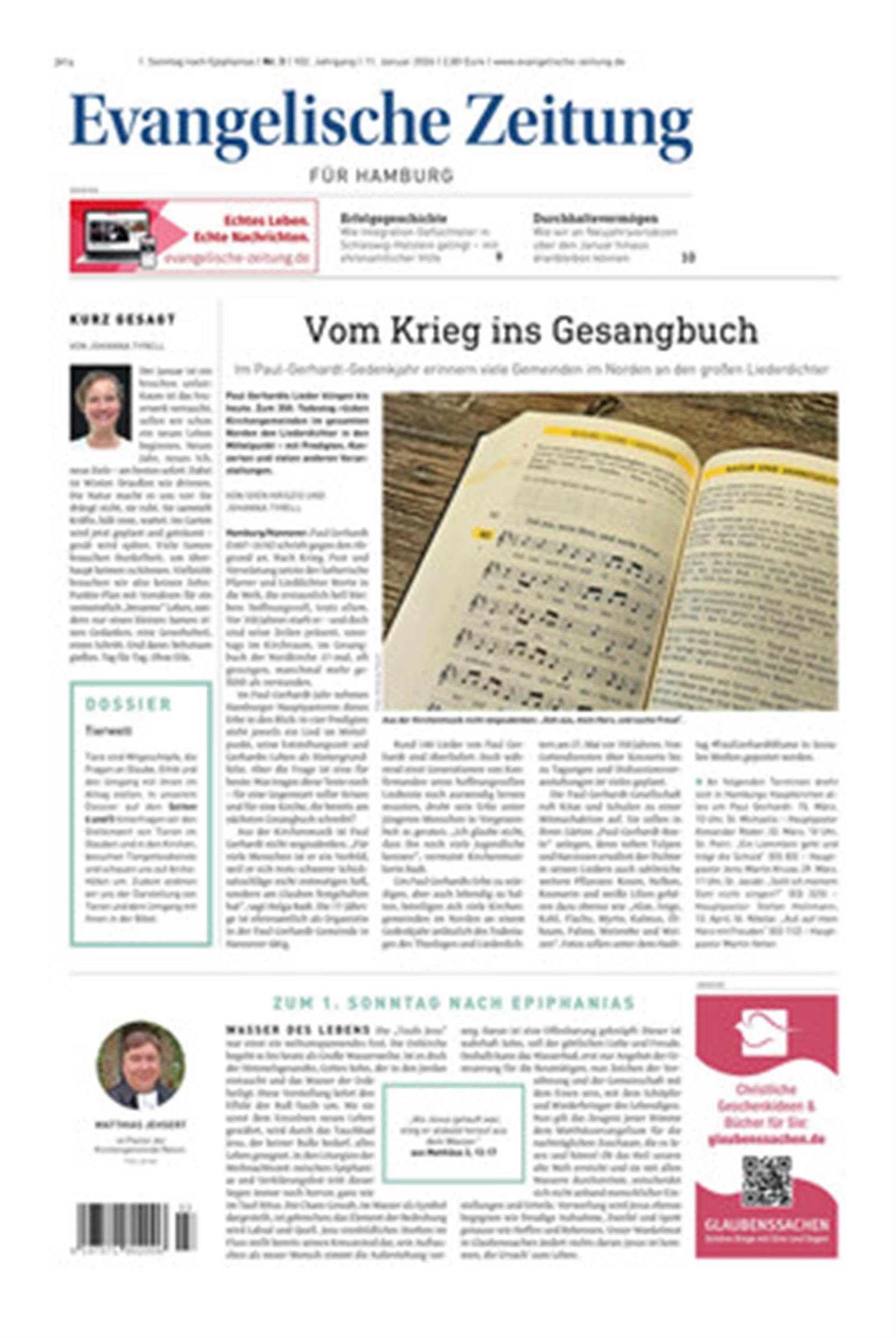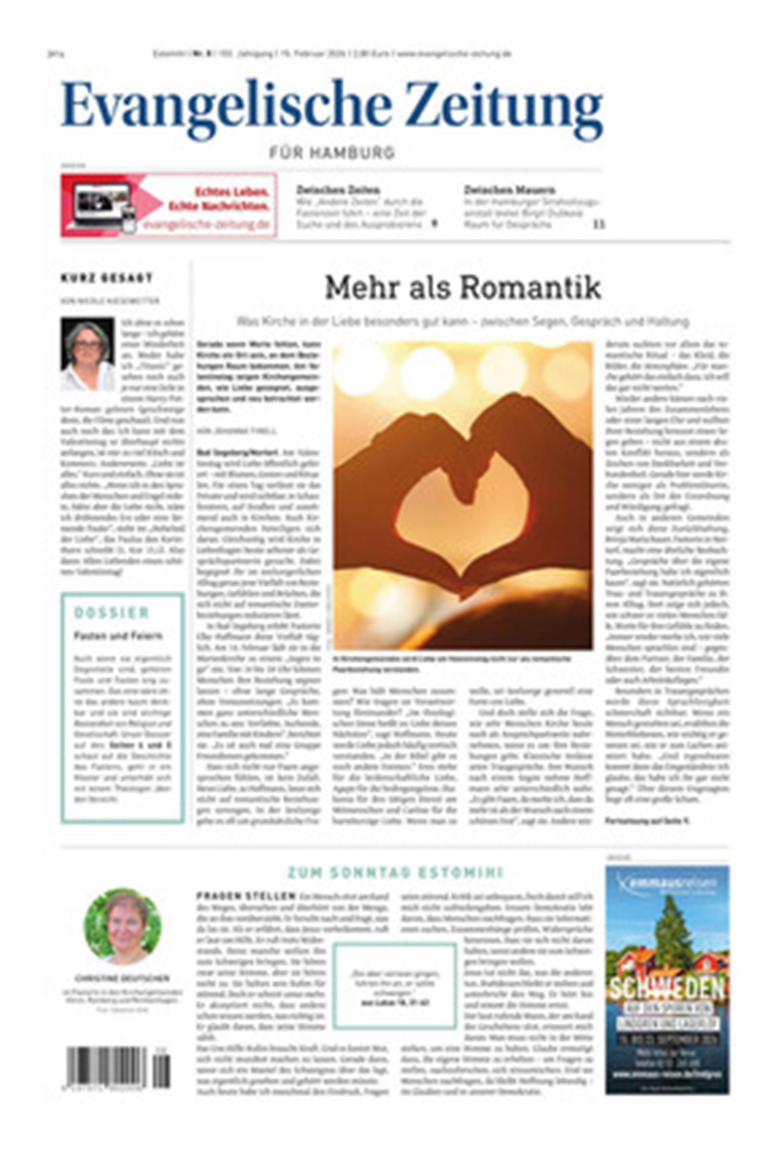Die »Evangelische Zeitung« ist die einzige Wochenzeitung für Schleswig-Holstein (einschließlich Nordschleswig) sowie Hamburg und erscheint auch in den Landeskirchen von Hannover, Braunschweig und Oldenburg.
