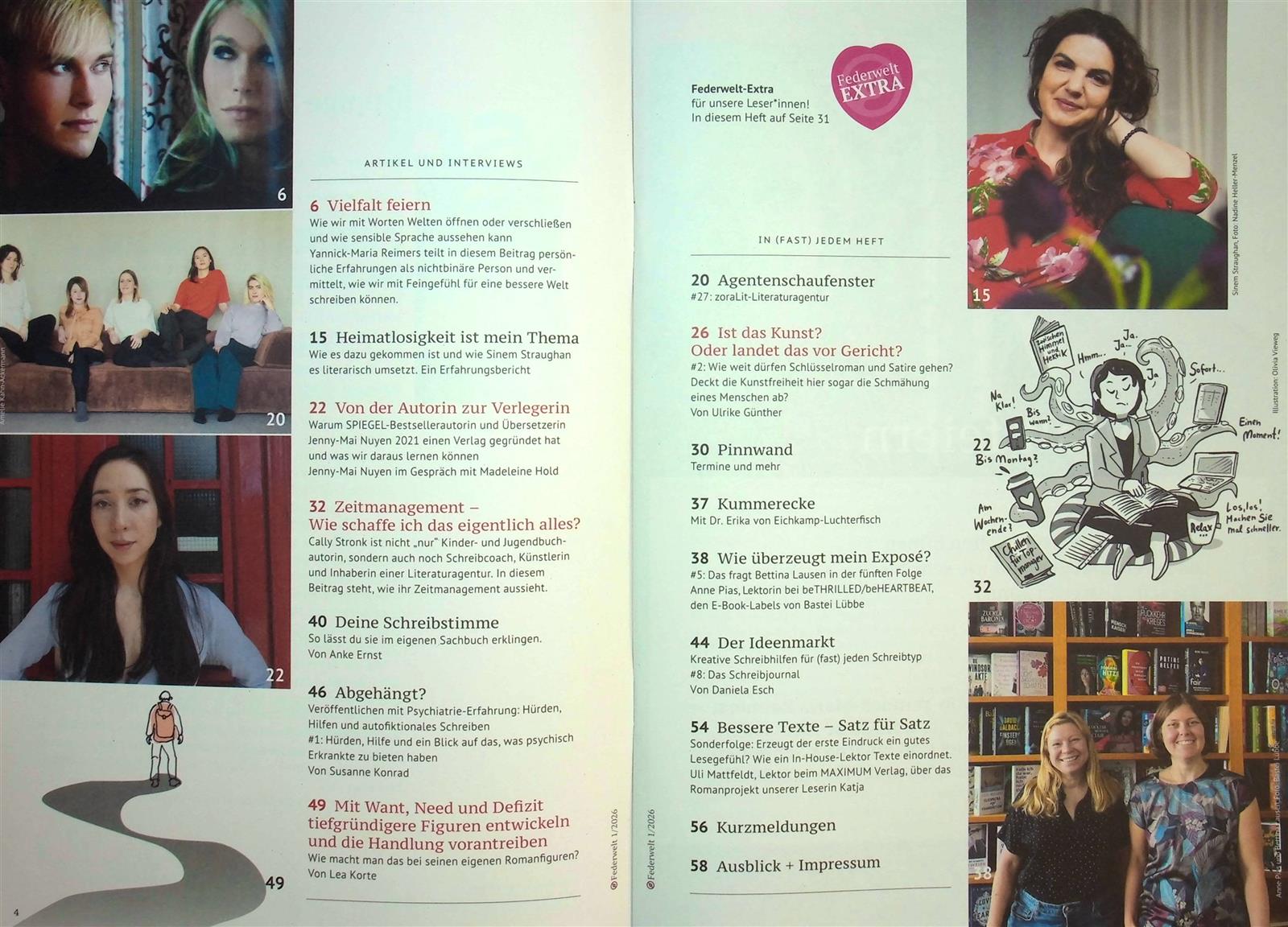 Federwelt ist darauf spezialisiert, einen einzigartigen und soliden Einblick in die literarische Welt zu geben. Das Besondere an der Federwelt ist, dass sie versteht, was die Leser wollen, und dies in Form eines Magazins an die Schriftsteller weitergibt, so dass diese sich in jeder Hinsicht verbessern können.