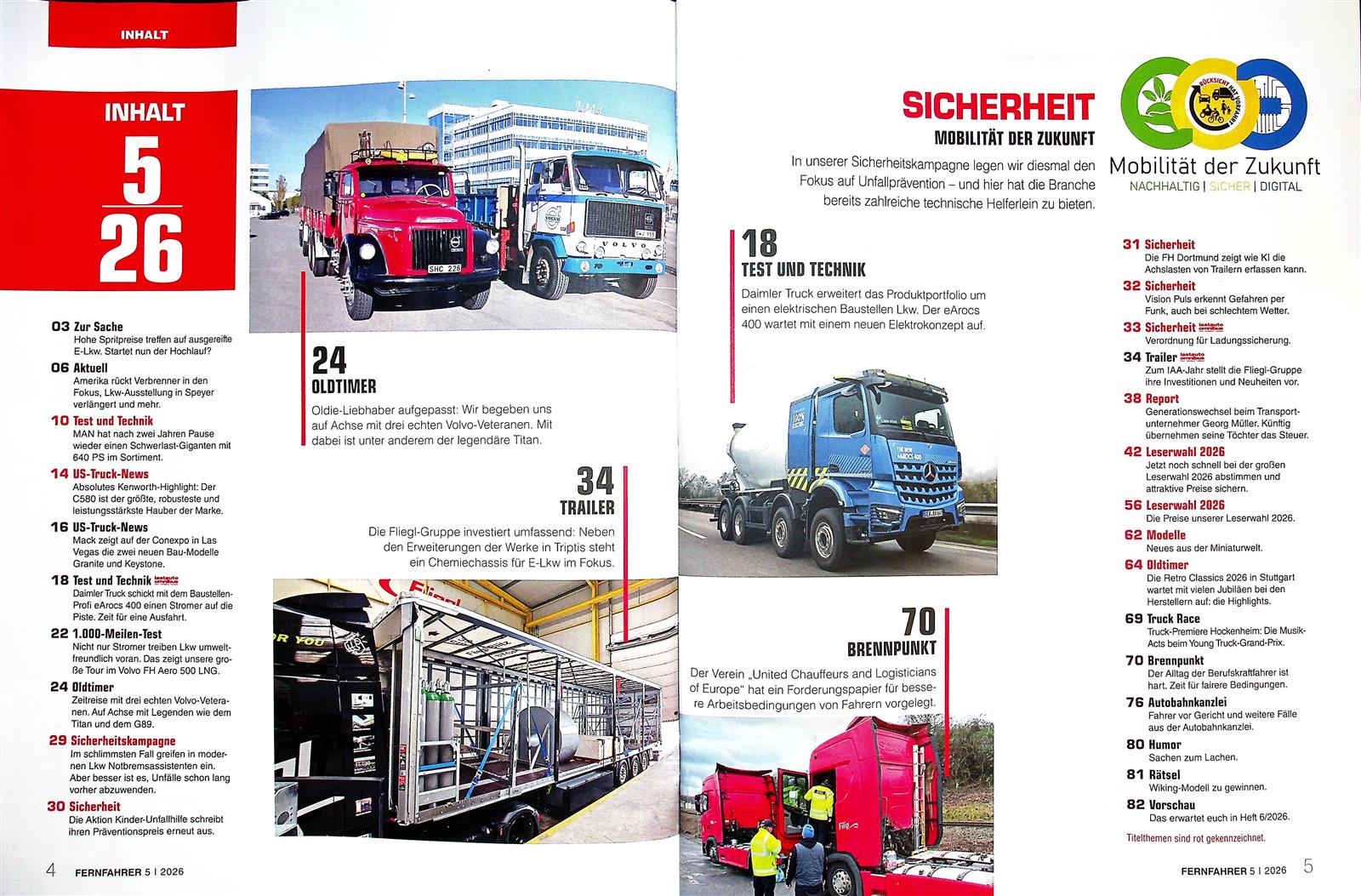 Elektro, Diesel und neue Herausforderer: Der neue eActros im Test, mehr Nutzlast bei vertrauter Optik. Aus China drängt mit dem eTopas 600 ein Langstrecken-Rivale nach Europa. Dazu: Scania Super-11-Motor im Praxistest, Truck of the Year, Report aus Schweden und Einblicke in Sicherheit und Fahrer:innen-Alltag.