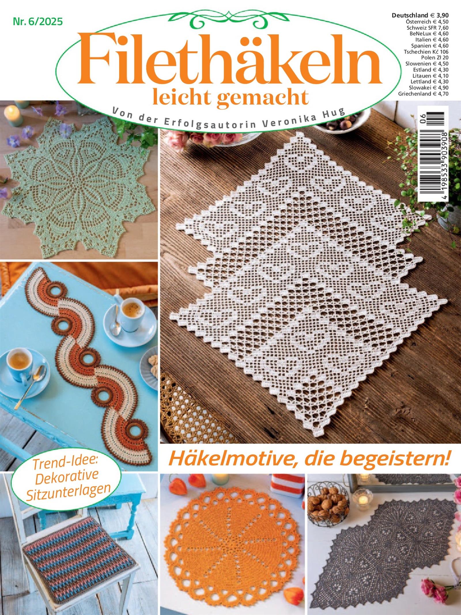 Praktische Stuhlauflagen, gehäkelt in harmonischen Farben – für bequemen Sitzkomfort und ein stimmiges Gesamtbild im Essbereich.