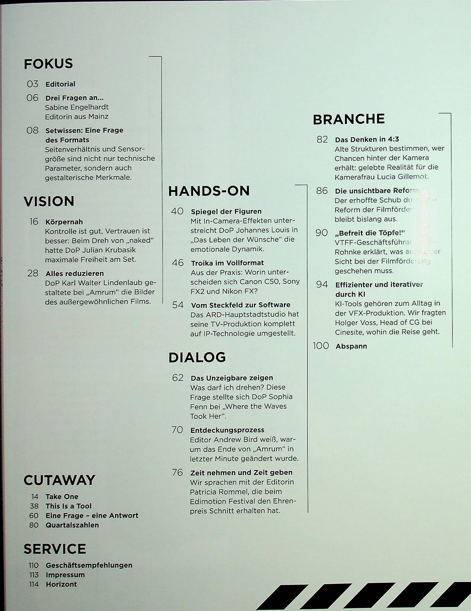 Fachzeitschrift der Film- und TV-Branche, für Medienschaffende aus Produktion, Postproduktion und Ausbildung.