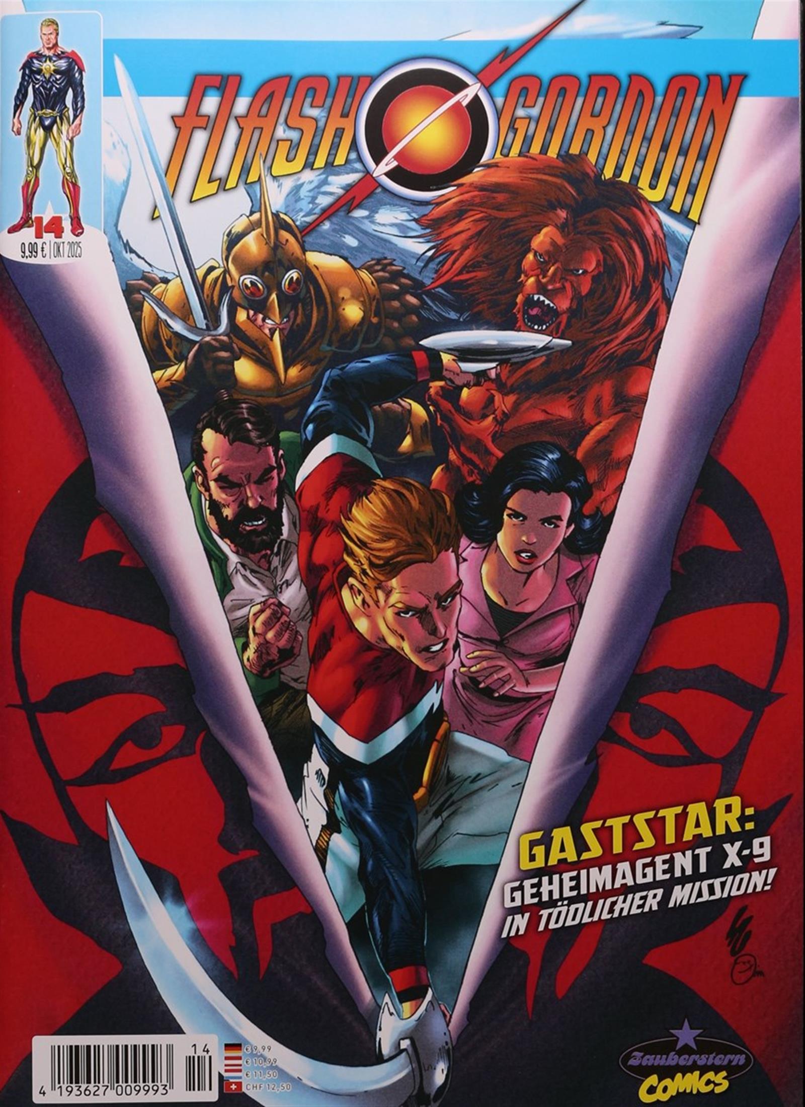 Nachdem der „weltbekannte Polospieler“ Flash Gordon mit einem Flugzeug abgestürzt ist, begegnen er und die weitere Überlebende Dale Arden dem mit „großartigem Verstand“ ausgestatteten Dr. Zarkow, welcher, kurzfristig wahnsinnig geworden, die beiden zwingt, mit ihm in einer selbstgebauten Rakete zu einem nahenden Kometen zu starten, um diesen von seinem Kollisionskurs mit der Erde abzulenken und sie so vor einem Zusammenstoß zu retten. Dies gelingt, wobei die Rakete eine Bruchlandung erleidet; der Komet selbst entpuppt sich unterdessen als der aus der Bahn geworfene und mit unzähligen recht exotischen Lebewesen besiedelte Planet Mongo. Hier erleben die drei allerlei Abenteuer mit diversen Gegenspielern bzw. Verbündeten. Herrscher des Planeten ist der Tyrann Ming der Grausame, dessen Tochter Aura sich wiederum in Flash verliebt, was des Öfteren zu Eifersuchtsszenen Dale Ardens führt.