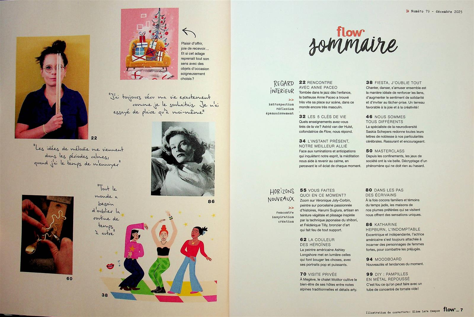 In der Psychologie bezeichnet der Flow ein Gefühl des Glücks und des Aufgehens in einer Tätigkeit. Das gleichnamige Magazin, hier in der französischsprachigen Version, wurde 2013 ins Leben gerufen bzw. aus den Niederlanden lizenziert und hat ebenfalls das Glück seiner Leserinnen und Leser zum Ziel. Die Themen sind breit gefächert, wobei das selbst ausgegebene Motto "Keine Chance für schlechte Nachrichten“ lautet.