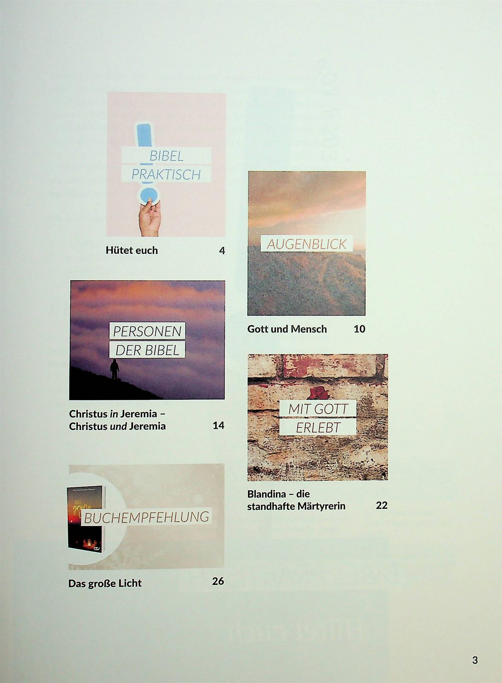 Folge mir nach ist die perfekte Zeitschrift für junge Erwachsene, die sich mit dem Christentum auseinandersetzen und ihre eigene Identität finden wollen. Durch seine vielfältigen Artikel wird es nicht nur ihre Bindung zum Christentum stärken, sondern sie auch über die Welt um sie herum aufklären.