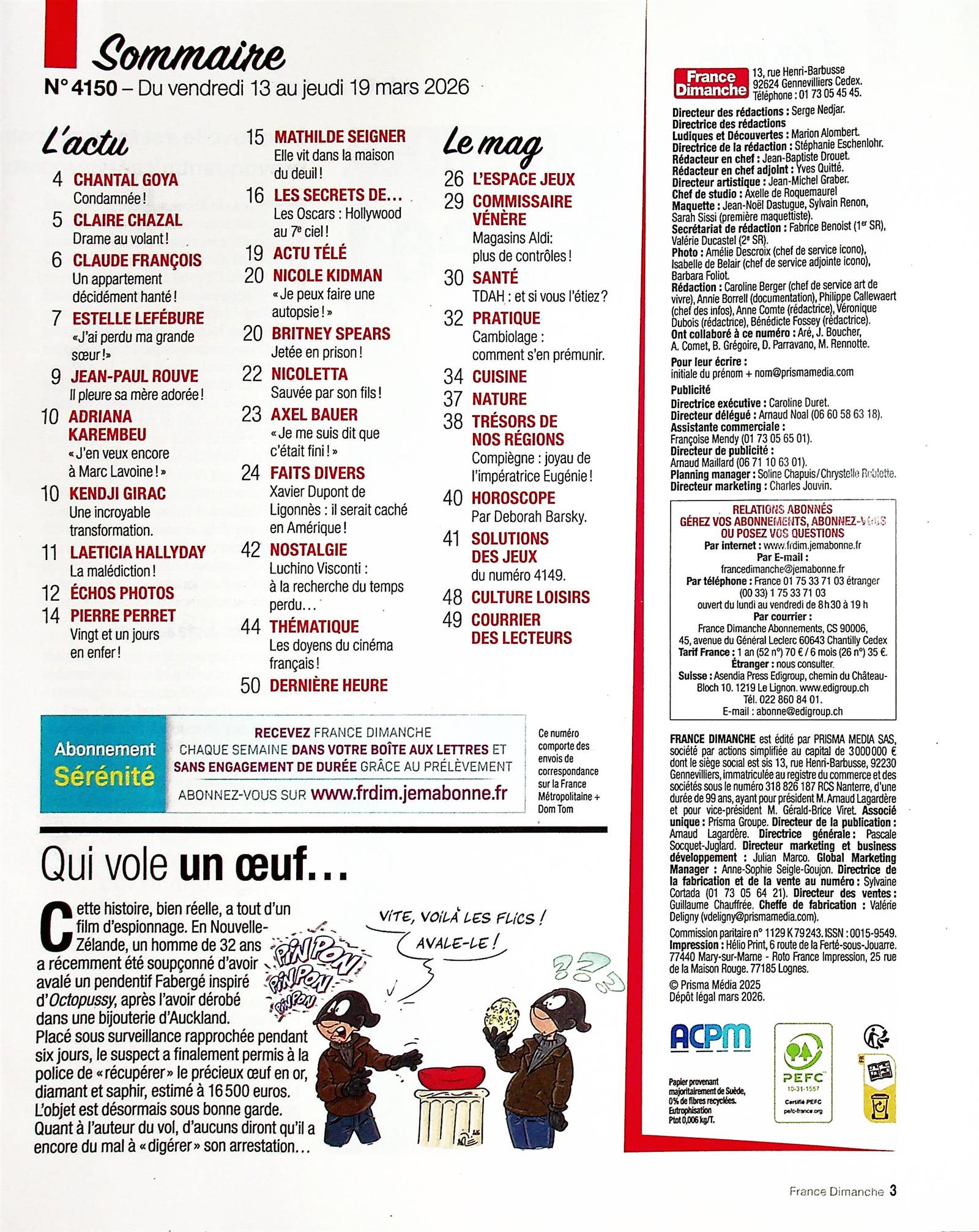 Französische Wochen-Illustrierte: Stars-Interviews, exklusive Fotos, Rezeptideen, Wellness...