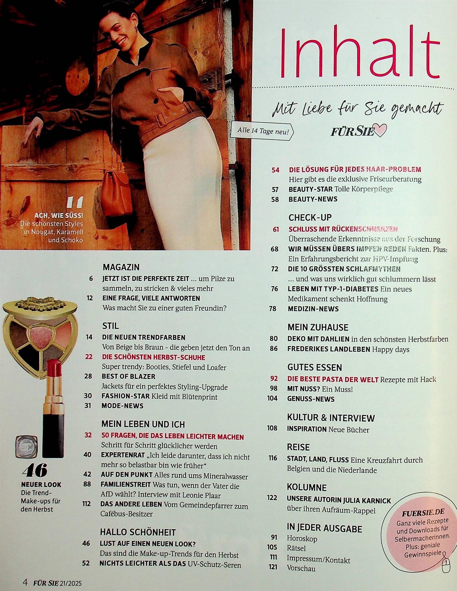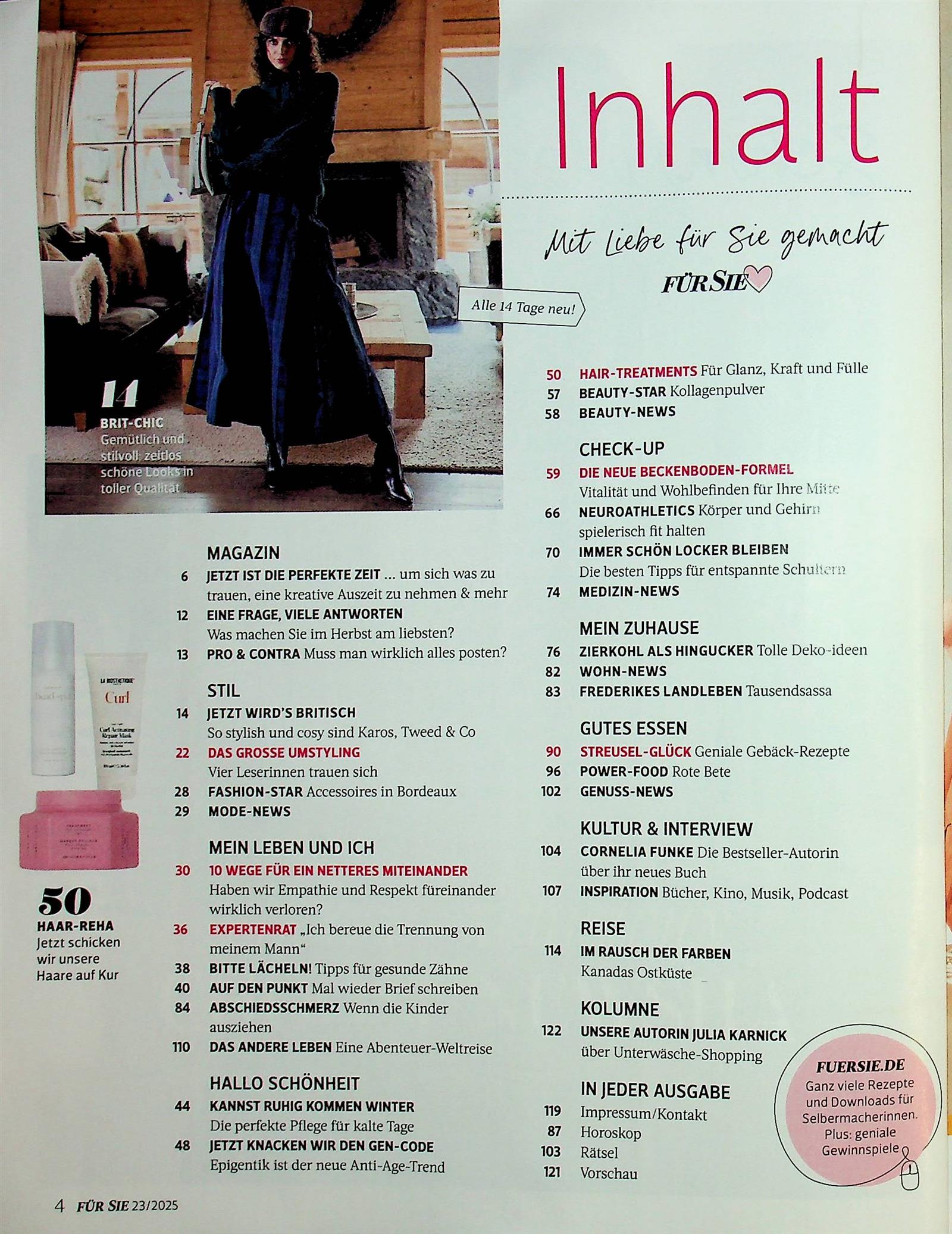 Ich finde die Zeitschrift super, hat von allem was dabei. Mode, Beauty, interessante Berichte, Reisetips. Ideales Magazin und der Service ist auch top. Mir haben auch noch nie irgendwelche Beilagen gefehlt.