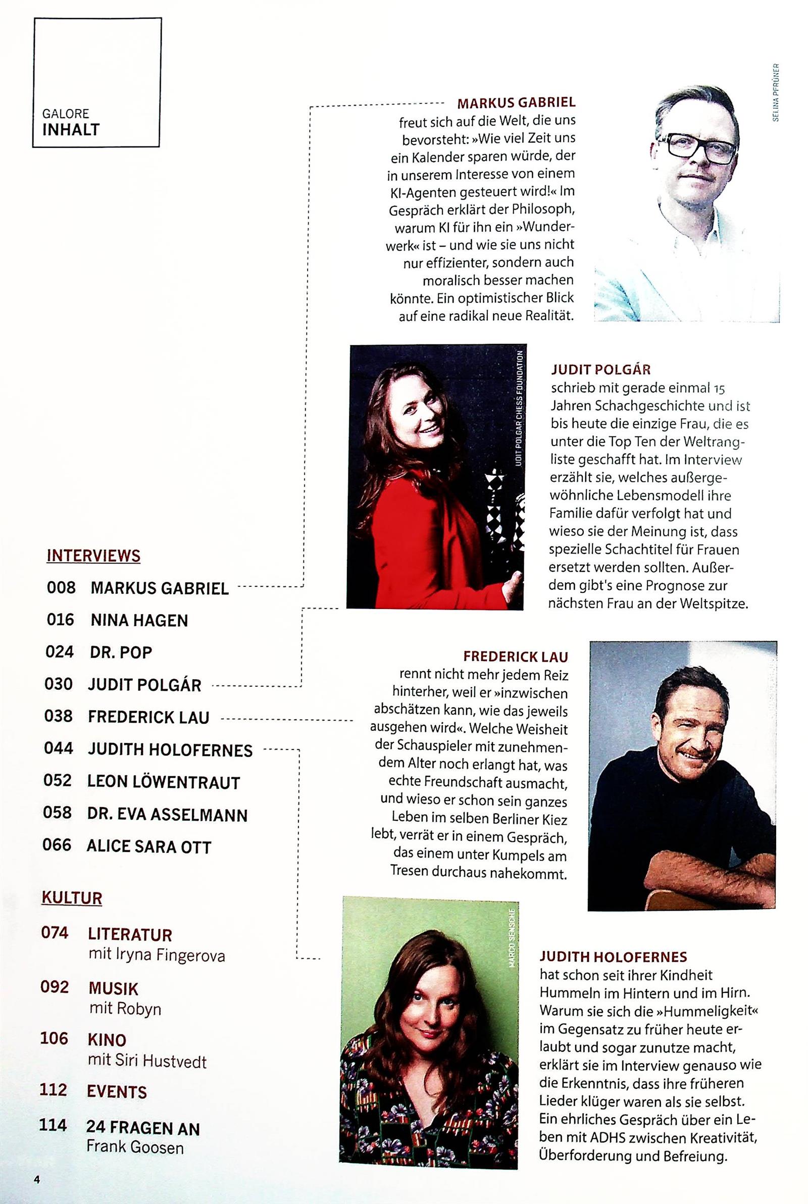 GALORE ist das erste und einzige deutsche Magazin, das sich im Kern dem Thema Interviews widmet.