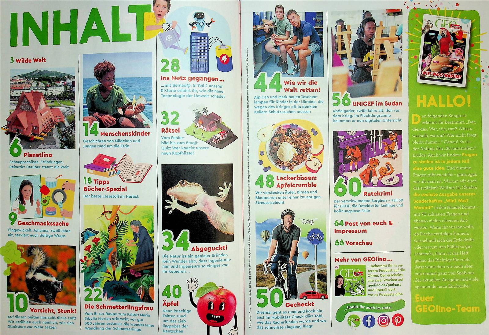 GEOlino, inspiriert von dem beliebtesten Magazine GEO, ist ein lebendiges und charmantes Kinderzeitschrift, das komplexe Themen der Welt kindgerecht und unterhaltsam aufbereitet. Sie legt Wert auf eine sympathisch-spielerische Umsetzung von Wissensthemen zu kindlichen Lebenswelten. GEOlino vermeidet dabei einen lehrbuchhaften Ansatz; stattdessen werden kleine, annotierte Bilder und bunte Illustrationen neben kurzen, verständlichen Artikeln verwendet, um einen einladenden Rahmen zu schaffen. Diese Methode zieht Kinder in eine Entdeckungsreise mit ein, fördert ihre Neugier und ihren Wissensdurst und unterstützt sie darin, ein tieferes Verständnis für Menschen, Tiere und die Umwelt zu entwickeln. Ergänzt wird dies durch spielerische Elemente wie Bastelwettbewerbe zu Natur- und Umweltthemen, die nicht nur Interesse wecken, sondern auch aktiv einbeziehen und somit Wissen und Werte mit Freude vermitteln.