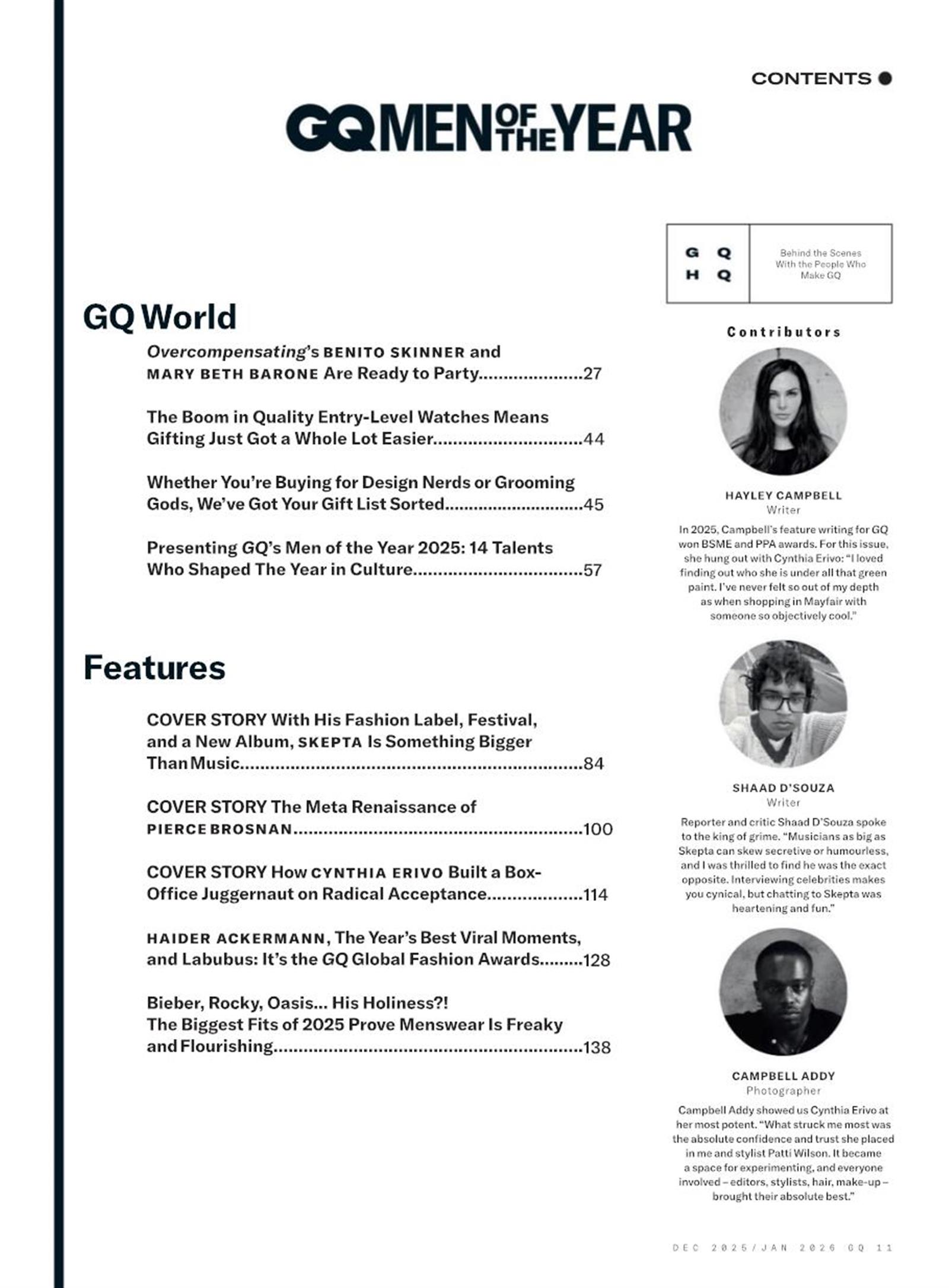Charakteristisch für die GQ (UK) ist ihre reine Ausrichtung auf reine Männerthemen. Sonderhefte zu Modethemen aber auch zu den Trends der Automobilbranche bieten zusätzlichen spannenden Lesestoff. Besonderen Charme erlangt das Magazin durch seine mittlerweile über 70-jährige Tradition – Ende der 50er-Jahre wurde das US-Original ins Leben gerufen.