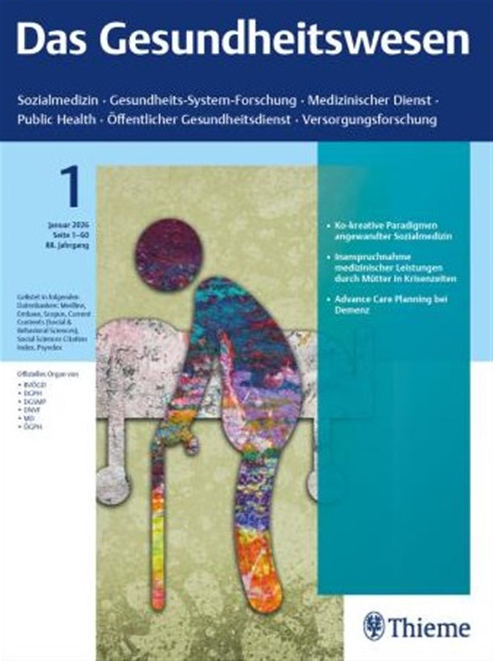 Sozialmedizin, Medizinischer Dienst, Public Health, Öffentlicher Gesundheitsdienst, Versorgungsforschung...: Das Gesundheitswesen informiert Sie umfassend und aktuell über die wichtigsten Themen des Gesundheitswesens. Neben Leitlinien, Übersichten und Kommentaren finden Sie aktuelle Forschungsergebnisse und Beiträge für die CME-zertifizierte Fort- und Weiterbildung. Die Zeitschrift bietet ein wissenschaftliches Diskussionsforum und eine Plattform für Mitteilungen der Fachgesellschaften.