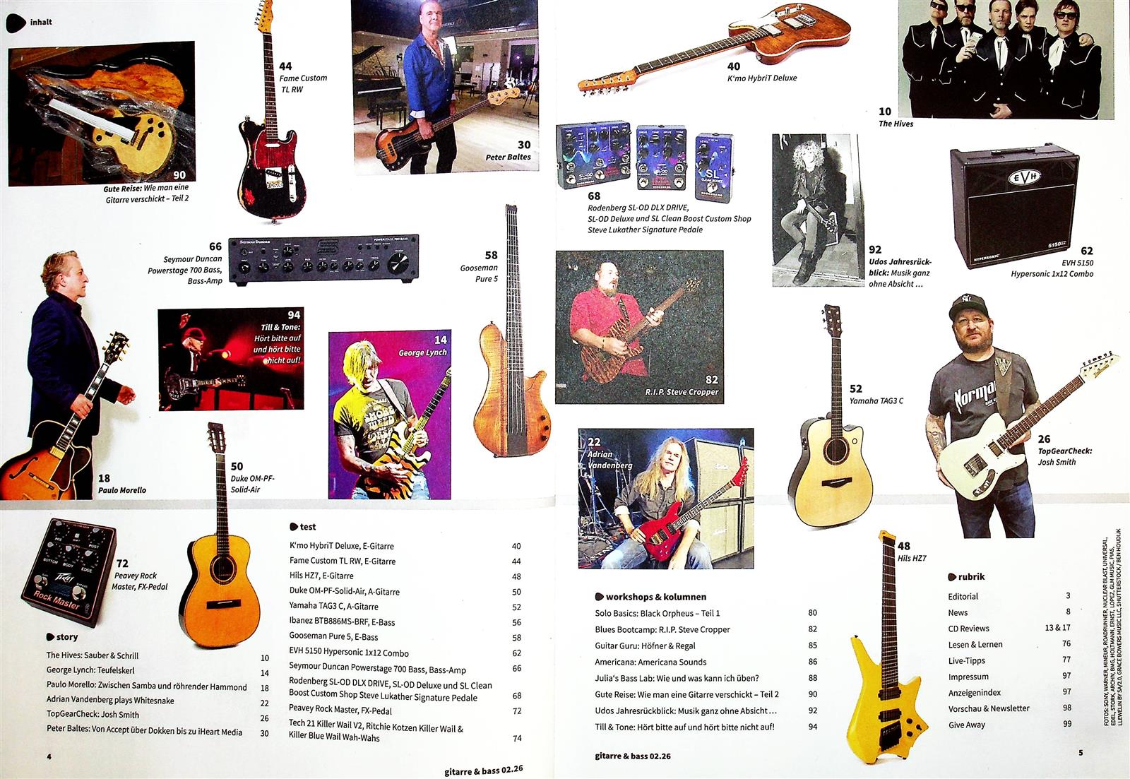 Die Zeitschrift ist für Gitaristen und Bassisten unentbehrlich. Leider erscheinen bei den Tests oft zu teures Equipment. gümstige wie Fender Solidstate werden nicht mal erwähnt. leider sind die Musiker übe di berichtet wird meistns schon über 60.