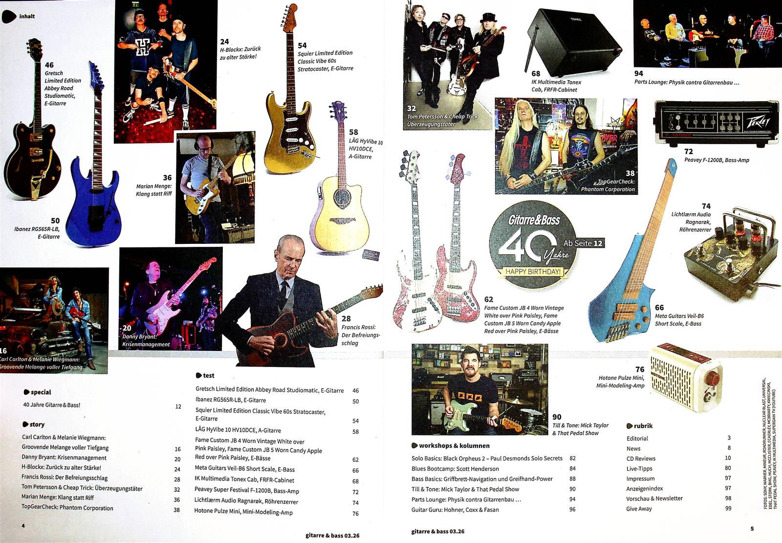 Gitarre & Bass ist ein nützliches Magazin für Freizeitmusiker, Profis, Anfänger und Instrumentalisten. Das Magazin wird von Gitarren- und Bassliebhaber aller Altersgruppen gerne gelesen. Das langjährige Musikermagazin ist für Gitarrenanfänger und Profis gleichermaßen geeignet und bietet nützliche Informationen und Ratschläge zum Thema Musik.
